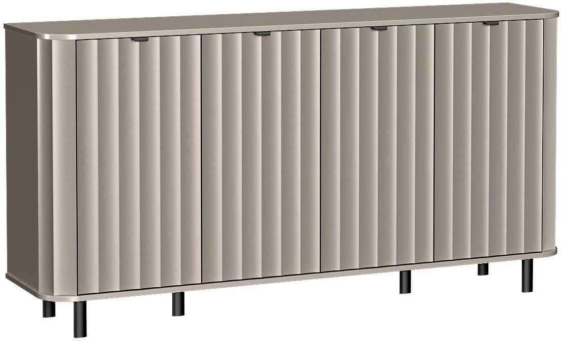 Komoda NOVADO Clay Gray to mebel, który łączy minimalistyczną formę z przyjemną, glinianą szarością. Odcień Clay Gray nadaje wnętrzu harmonii i delikatnego ocieplenia, a subtelne ryflowane fronty podkreślają nowoczesny styl kolekcji. Zaokrąglone boki, gładki blat i smukłe czarne nogi sprawiają, że komoda prezentuje się lekko, elegancko i świetnie wpisuje się we wnętrza modern, skandynawskie czy soft loft. To nowoczesna komoda, która dodaje przestrzeni charakteru bez jej przytłaczania. Funkcjonalne wnętrze – pojemne szafki z półkami W komodzie zastosowano praktyczny układ czterech szafek z półkami, dzięki czemu łatwo uporządkować zastawę, dokumenty, tekstylia czy różne domowe akcesoria. Szerokie fronty dają komfortowy dostęp do każdej części mebla, a przemyślany podział ułatwia utrzymanie porządku na co dzień. Komoda świetnie sprawdzi się w salonie, jadalni lub domowym biurze, oferując dużo miejsca do przechowywania. To komoda Clay Gray, która łączy elegancki wygląd z realną wygodą użytkowania. Kolor Clay Gray – spójna baza do stylowych aranżacji Ciepła szarość Clay Gray pięknie eksponuje strukturę ryflowań i nadaje bryle subtelnej elegancji. To kolor, który doskonale łączy się z czernią, bielą, drewnem czy pastelami, pozwalając tworzyć wnętrza uporządkowane i przytulne. Dzięki swojej uniwersalności komoda do salonu NOVADO Clay Gray pasuje do wielu stylów i aranżacji, stanowiąc estetyczną oraz funkcjonalną bazę dla reszty wyposażenia. To mebel, który zachwyca prostotą formy, a jednocześnie oferuje praktyczną przestrzeń niezbędną w codziennym użytkowaniu. Wymiary Szerokość: 176,5 cm Głębokość: 40,5 cm Wysokość: 91 cm