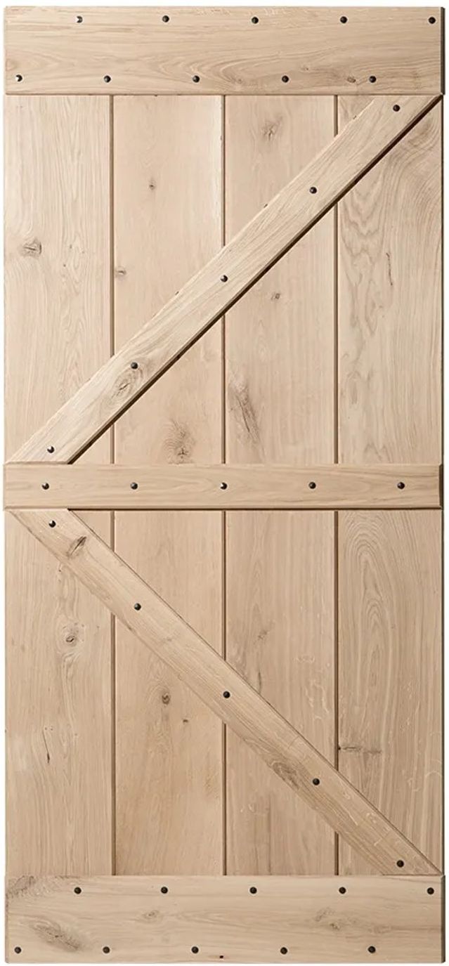 Skrzydło drzwiowe przesuwne Loft dąb marki Kornik o szerokości 770 mm To klasyczny, loftowy styl, który idealnie komponuje się z każdym wnętrzem. Produkt wykonany jest z dębu rustykalnego. Naturą tego drewna jest możliwość występowania na nim charakterystycznych naturalnych przebarwień, drobnych sęczków czy mikro ubytków. Nadmienione elementy nie mają żadnego wpływu na jakość wykonanego produktu i są częścią jego estetyki wizualnej. Skrzydło przesuwne to dobre rozwiązanie ze względu na oszczędność miejsca. Naturalne drewno dębowe nadaje pomieszczeniom przytulny, ciepły charakter. Użycie najwyższej jakości materiałów i szczegółowa kontrola gwarantują doskonałą jakość wykonania. Przy zastosowaniu dwóch kompletów uzyskamy możliwość rozsuwania drzwi na dwie strony. Uniwersalność szlifowanych drzwi Loft Skrzydło szlifowane jest przygotowane do lakierowania, olejowania lub malowania na dowolny kolor. Dzięki temu drzwi mogą się wyróżniać i być niepowtarzalnym egzemplarzem. Konstrukcja drzwi Konstrukcja skrzydła składa się z trzech poziomych desek oraz dwóch desek mocowanych na ukos. Natomiast druga strona to gładka powierzchnia ułożona z grubych, szerokich desek pionowych. Taka konstrukcja zapewnia drzwiom stabilność oraz trwałość. Drzwi o ponadczasowym wzornictwie to częsty wybór w polskich domach. Kute gwoździe w czarnym kolorze Drzwi ozdobiono czarnymi kutymi gwoździami. Charakterystyczne i praktyczne dodatki to wybór dla osób, które lubią zarówno nowoczesne, jak i tradycyjne rozwiązania w aranżacji wnętrz. Przesuwne drzwi Przesuwane drzwi pełne to swoboda ruchów i łatwość przemieszczania się. Skrzydło przesuwne to dobre rozwiązanie ze względu na elegancki wygląd i lekkość pracy. Ponadto to oszczędność miejsca w małych pomieszczeniach, gdzie takie skrzydło może być chowane za wysoki mebel. Przesuwne drzwi mogą służyć zarówno jako drzwi lewe, jak i prawe. Drzwi są w sprzedaży bez szyny i klamki, które są dostępne jako oddzielne produkty.