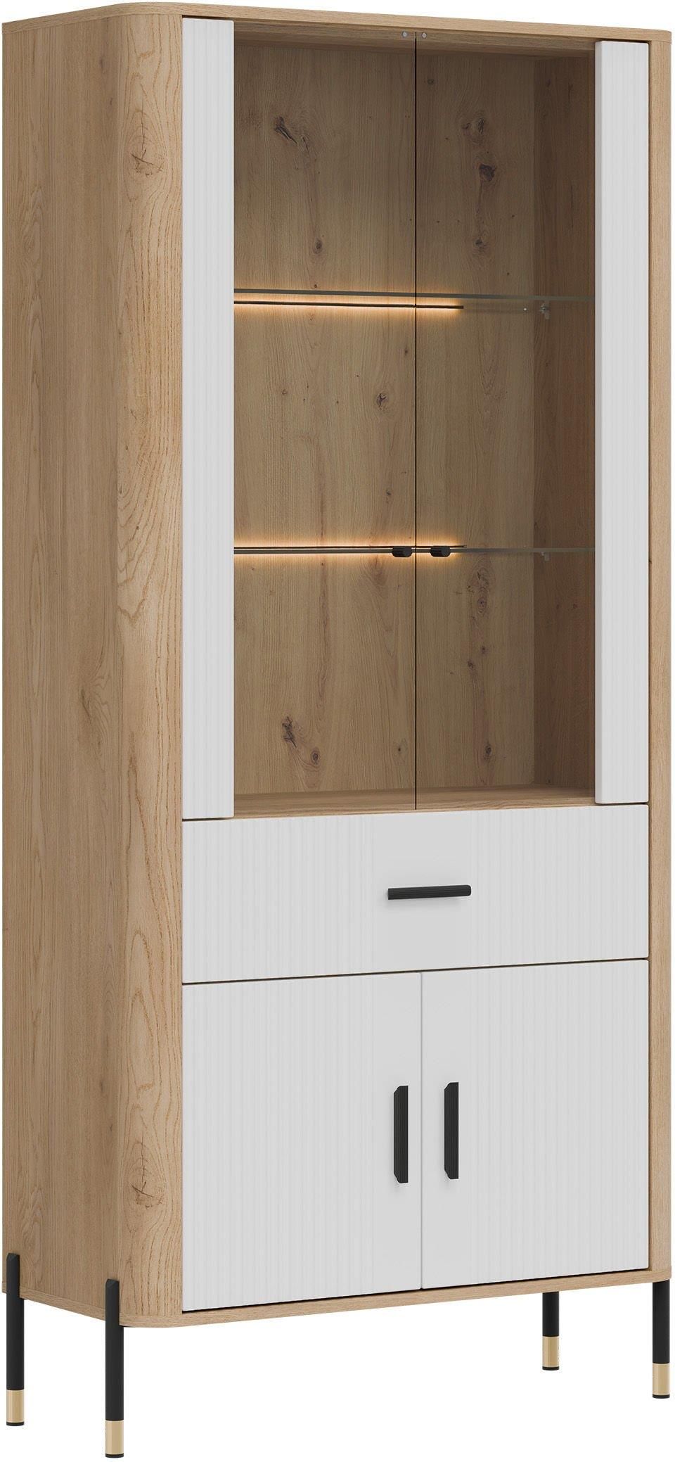 Liveo Witryna Wysoka Dante Dt14 4D1S Dąb Cremona Torro / Biały Mat Czarny Uchwyt 187Cm Sierpc