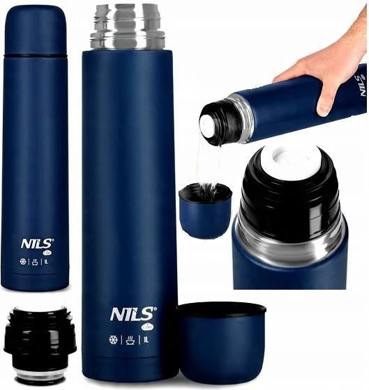Nils Camp Kubek Termiczny Butelka Termos Stal Nierdzewna Szczelny Bezpieczny 1L Niebieski Sierpc