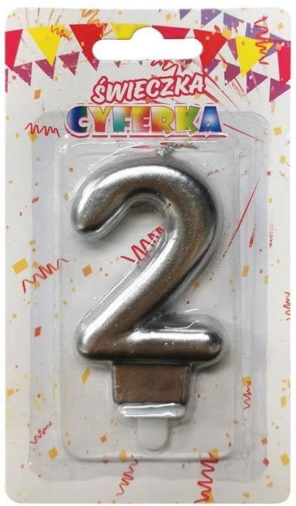 Panon Świeczka Cyferka 2 Metaliczna Srebrna Sierpc