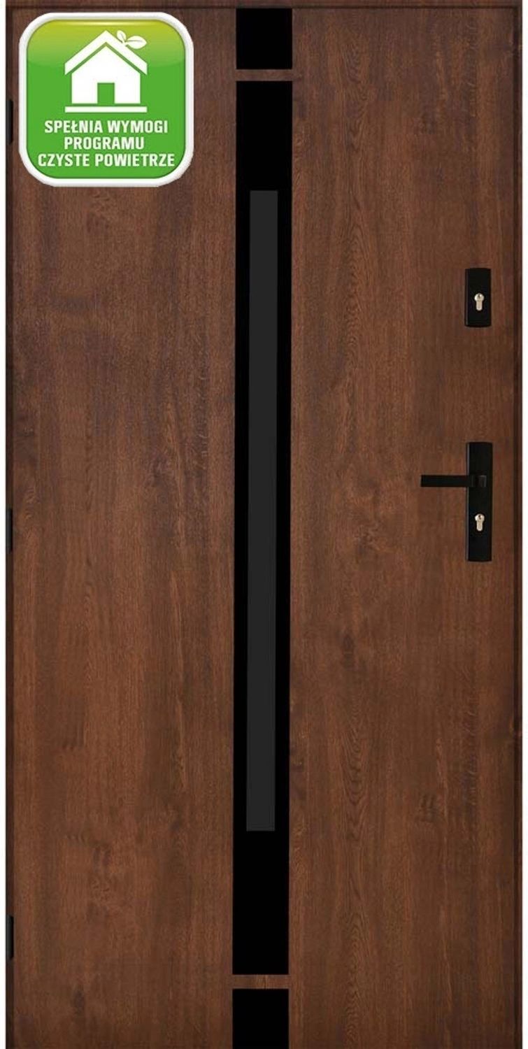 Lewostronne drzwi zewnętrzne Silves marki Pantor w kolorze orzech o szerokości 90 cm są podstawą wyposażenia domu. Drzwi Silves zapewniają zarówno bezpieczeństwo, jak i komfort akustyczny oraz cieplny. Drzwi są dostępne w trzech wariantach kolorystycznych: antracyt, złoty dąb i orzech. Wysokiej jakości, stalowe drzwi Oferowane skrzydło drzwi zewnętrznych charakteryzuje się szczelnym wypełnieniem termoizolacyjnym z płyta izolacyjnej EPS i całkowitą grubością skrzydła wynoszącą 72 mm. Lewostronne drzwi Silves są stalowe i przeznaczone do budynków jednorodzinnych, wielorodzinnych oraz mieszkań. Pokrycie skrzydła wykonano z blachy stalowej lakierowanej Nano Advance 0,5 mm. Drzwi są odporne na szkodliwe działanie warunków atmosferycznych. Wyposażono je również w dodatkowe zabezpieczenie w postaci 3 bolców antywyważeniowych, które zabezpieczają drzwi przed próbami wyważenia i zawiasów trójdzielnych. Właściwości termoizolacyjne i odporność na działania atmosferyczne Lewostronne drzwi zewnętrzne Silves pełnią funkcję ochrony domu przed niekorzystnymi warunkami atmosferycznym oraz pomieszczeń przed utratą ciepła. Gwarancją odpowiedniej termoizolacyjności jest współczynnik przenikania ciepła U. Im niższy współczynnik U, tym lepsze zabezpieczenie. Ograniczenie utraty ciepła pozwala oszczędzić energię. Współczynnik przenikania ciepła U dla oferowanych drzwi wynosi 1,3 W/m2K. Ponadto dzięki szybie w drzwiach zewnętrznych można zyskać widok na otoczenie i dodatkowe doświetlenie strefy wejścia. Światło dzienne wpadające do pomieszczenia rozjaśnia korytarz. Akcesoria w komplecie W komplecie znajduje się: ościeżnica łatwa w montażu, klamka, szyld górny, 2 zamki, 2 wkładki w systemie jednego klucza, próg PVC, szyba hartowana, 2 uszczelki, zaślepki, celownik PVC z uszczelką. Drzwi podlegają gwarancji przez okres 2 lat. Program Czyste Powietrze Celem programu Czyste Powietrze jest poprawa jakości powietrza, a także zmniejszenie emisji gazów cieplarnianych, dzięki wymianie źródeł ciepła oraz poprawie efektywności energetycznej jednorodzinnych budynków mieszkalnych. Program rządowy polega na dofinansowaniu wymiany starych źródeł ciepła na nowoczesne oraz przeprowadzeniu koniecznych zmian termomodernizacyjnych budynku. Program Czyste Powietrze 3.0 oferuje kilka form wsparcia do wymiany pieców na ekologiczne źródła energii oraz do termomodernizacji domów i mieszkań. Tegoroczne rachunki za ogrzewanie skłaniają wielu właścicieli domów do zastanowienia się nad ich ociepleniem, w tym również nad wymianą starych okien i drzwi. To bardzo dobra, bo nadzwyczaj opłacalna decyzja. Dzięki temu możemy zaoszczędzić co najmniej 40 proc. zużywanej energii cieplnej, a dodatkowo otrzymać wysokie dofinansowanie do prac termomodernizacyjnych. Zmiany w programie "Czyste Powietrze", wprowadzone na sezon 2023, pozwalają bowiem na duże, niekiedy nawet 100-procentowe dofinansowanie m.in. do wymiany okien i drzwi. Więcej informacji znajdziesz tutaj - Program Czyste Powietrze - STOP Smog Poniżej przedstawione wymiary netto, są wymiarami skrzydeł wraz z ościeżnicą.