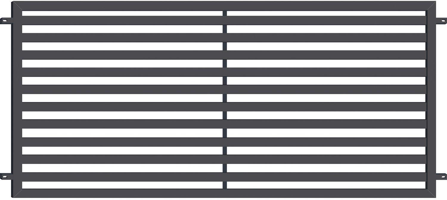 Przęsło Arizona w kolorze antracytowym o prostym nowoczesnym wzorze doskonale będzie się komonować ze współczesną architekturą budynków. Jest idealnym rozwiązaniem dla tych, którzy cenią sobie trwałość, funkcjonalność i estetykę. Przęsło jest cynkowane i zabezpieczone antykorozyjnie co daje Nam długotrwałą odporność na korozję. Posiada 5-letnią gwarancję producenta. Szerokośc całkowita: 200 cm, Szerokość w świetle słupków: 202 cm, Wysokość: 90 cm, Profil sztachetek: 40x10mm, Ilosć sztachetek: 10, Profil ramy: 40x40mm