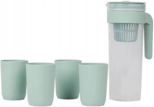 ELEGANCE SUMMER Dzbanek z Filtrem na Owoce + 4 Kubki Zielony Dzbanek świetnie sprawdzi się w warunkach polowych. Z łatwością przyrządzisz w nim odświeżającą, cytrynowo miętową lemoniadę oraz mrożoną herbatę. Dzięki wyjmowanej wkładce do owoców i ziół, masz kontrolę nad ilością składników, możesz je również w łatwy sposób wymienić. Do zestawu dołączono cztery kubki z tworzywa sztucznego. Po powrocie do domu zestaw możesz umyć w zmywarce. Dzbanek wykonano z trwałego, wytrzymałego plastiku, dzięki czemu odpowiednio używany, posłuży Ci przez lata. Już nigdy więcej nie zabierzesz ze sobą jednorazowych, plastikowych kubeczków. Jest to nie tylko dbałość o ekologię, ale też spora oszczędność. Produkt NOWY Zestaw zawiera dzbanek o pojemności 1l oraz 4 kubki o pojemności 250ml Kubki można schować do środka dzbanka w celu łatwiejszego przechowywania i transportu Dzbanek posiada filtr, w którym można umieścić ulubione owoce lub zioła, aby nadać wodzie smak Wykonany z trwałego plastiku Idealny na pikniki, wycieczki, czy spotkania w plenerze Kolor: zielony