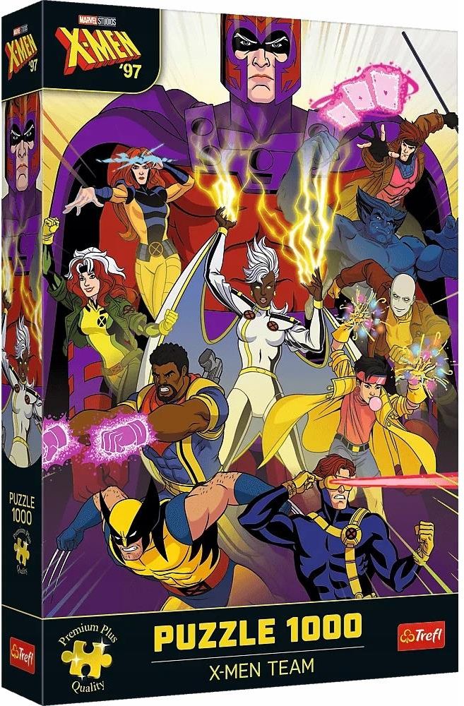 Puzzle Premium Plus Quality Marvel 1000 el. X-Men Team Premium Plus Quality — nowa jakość układania puzzli. Poznaj układanki, które wyróżnia doskonałe dopasowanie elementów, wysokiej jakości tektura i wyselekcjonowane obrazy. W opakowaniu znajdziesz plakat, który ułatwi układanie. Puzzle X-Men Team przedstawiają nieustraszonych bohatererów serialu X-Men '97. Po ich ułożeniu powstanie obraz o wymiarach 683x480 mm. Układanka wchodzi w skład niezwykłej serii, która przeniesie Cię do świata w którym wszystko jest możliwe i przypomni przygodny bohaterów znanych filmów, seriali i bajek. Puzzle produkowane od lat! Od 1985 roku w Trefl SA poświęcamy się temu, aby zagwarantować niezapomniane doznania podczas układania puzzli, które produkowane są w 100% w Polsce. Nasze układanki tworzymy z pasją, a każdy element cechuje wysoka jakość wykonania.  Dzięki wykorzystaniu papieru niwelującego odbicie światła, sprawiamy, że układanie staje się jeszcze przyjemniejsze. Po ułożeniu puzzli możesz utrwalić obrazek klejem i powiesić swoje dzieło na ścianie.  Zalety układania puzzli Puzzle to świetna rozrywka dla każdego, niezależnie od wieku czy umiejętności. To także dobry trening dla umysłu i ciała. Układając, wyrównujemy oddech, tempo bicia serca oraz spada ciśnienie krwi. Kompletowanie układanki uczy cierpliwości i wytrwałości, co przekłada się na umiejętności przydatne w codziennym życiu. Odkryj nową pasję już dziś! Szukasz pomysłu na miły wieczór w domowym zaciszu? Układanie puzzli to świetny sposób na spędzenie wolnego czasu w gronie przyjaciół i rodziny a do tego rewelacyjny trening dla mózgu. Szeroki wybór wzorów pozwala wybrać układankę dopasowaną do Twoich zainteresowań. Puzzle są doskonałym prezentem z okazji urodzin lub świąt. Odkryj Niezbędnik Puzzlomaniaka!