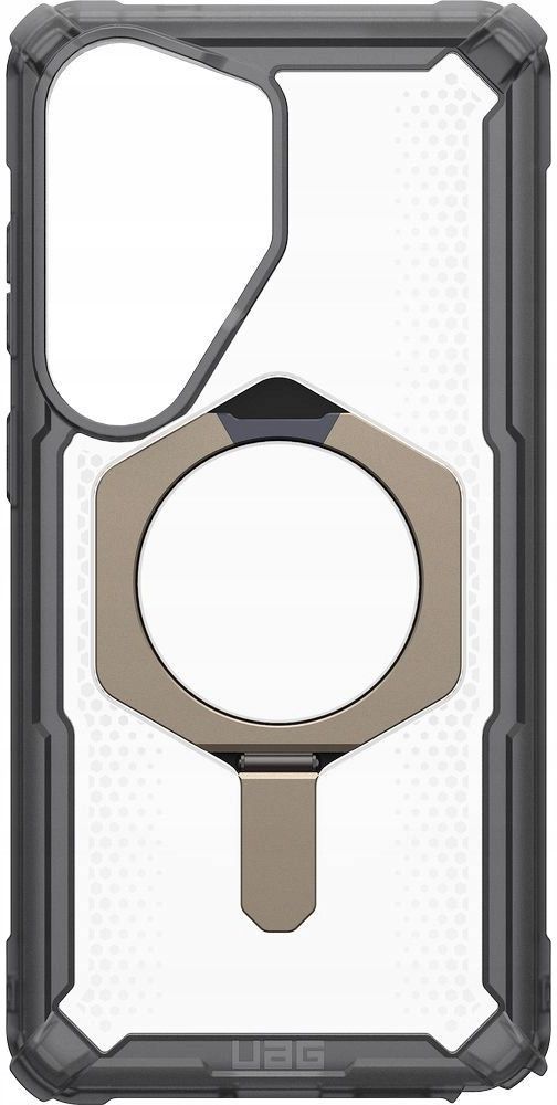 UAG Plasma XTE Mag do MagSafe Do Samsung Galaxy S26 Ultra Wersja kolorystyczna: Ash/Titanium (przezroczysto-szara z tytanowym elementem) Rodzaj ochrony: mocne, wytrzymałe i kompaktowe Materiał: Poliwęglan i termoplastyczny poliuretan Smukła i lekka budowa Zintegrowane osłony na przyciski Wbudowana podpórka Kompatybilność z technologią MagSafe i ładowaniem bezprzewodowym Lekko podwyższone ranty zwiększające ochronę ekranu i kamery na płaskich powierzchniach Wewnętrzna struktura plastrów miodu Kod producenta: 214522113136 Kod produktu: 840283927225 Etui kompatybilne ze szkłami o wymiarach mniejszych niż (dług. x szer.): 16,03 x 7,50 cm Dla naprawdę wymagających użytkowników Solidny pokrowiec od marki Urban Armor Gear z serii Plasma XTE do MagSafe. Użytkujesz swój telefon, jakby jutra miało nie być? Wykonane z połączenia TPU oraz poliwęglanu o wewnętrznej strukturze plastra miodu. Etui pomoże wydłużyć życie Twojego smartfona! Pancerne i wytrzymałe Najbardziej charakterystyczne etui marki UAG spełnia wojskowe standardy odporności Military Grade. Wbudowane osłony przycisków ochronią smartfon przed kurzem i pyłem! Nie pogrubia urządzenia Obudowa mimo swoich pancernych właściwości nie nadaje zbyt dużego gabarytu urzadzeniu - przy czym jest doskonale do niego dopasowana. Podwyższone krawędzie zwiększają ochronę obiektywów aparatu i ekranu przed zarysowaniami na płaskiej powierzchni. Na pomoc przed zarysowaniami Bez obaw przesuwaj swój telefon po blacie i innych powierzchniach - pokrowiec pokryty jest matową powłoką z większą odpornością na ścieranie i odciski palców. Wbudowana podpórka Wygodnie oglądaj filmy i bierz udział w wideokonferencjach! Case posiada zintegrowaną podpórkę, pozwalającą na ustawienie telefonu w poziomie. A co gdy ją złożysz? Podpórka doskonale wpasowuje się w etui i jest praktycznie niewidoczna! Kompatybilne z technologią MagSafe Etui nie zakłóca działania ładowania indukcyjnego (dotyczy modeli telefonów wyposażonych w tę funkcję). Dodatkowo posiada wbudowany specjalny pierścień magnetyczny, dzięki któremu zachowuje kompatybilność ze wszelkimi akcesoriami z serii MagSafe.