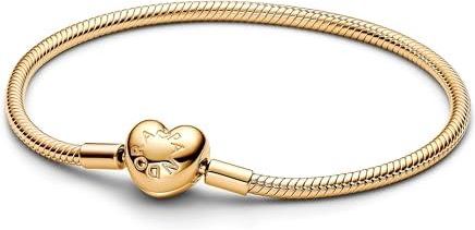 [AC] Pandora Moments Schlangen-Gliederarmband mit Herz-Verschluss aus Sterling Silber mit vergoldeter Metalllegierung, Kompatibel mit Pandora Moments, Siewierz