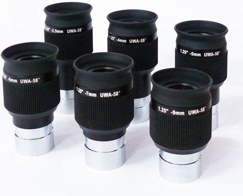 Krótkoogniskowe okulary SWA Plossl zostały starannie zaprojektowane aby zapewnić wysokiej jakości obrazy niezależnie od rodzaju teleskopu z jakim współpracują. Zostały zoptymalizowane do obserwacji jasnych obiektów, dzięki czemu uzyskują ostry obraz na całym polu widzenia. Okulary posiadają 58 stopniowe pole widzenia, co w połączeniu z ich ogniskową zapewnia komfortowe obserwacje Księżyca, planet i ciasnych par gwiazd podwójnych. Konstrukcja to zmodyfikowany okular typu Plossl z dodatkowym elementem zwiększającym pole widzenia. Okular posiada wykręcaną muszę oczną umożliwiającą idealne dobranie odpowiedniej odległości do oka. Ze względu na niską cenę oraz lepsze niż przeciętne możliwości optyczne, okulary świetnie sprawdzają się w wielu konstrukcjach optycznych jak i również w nasadkach binokularowych.