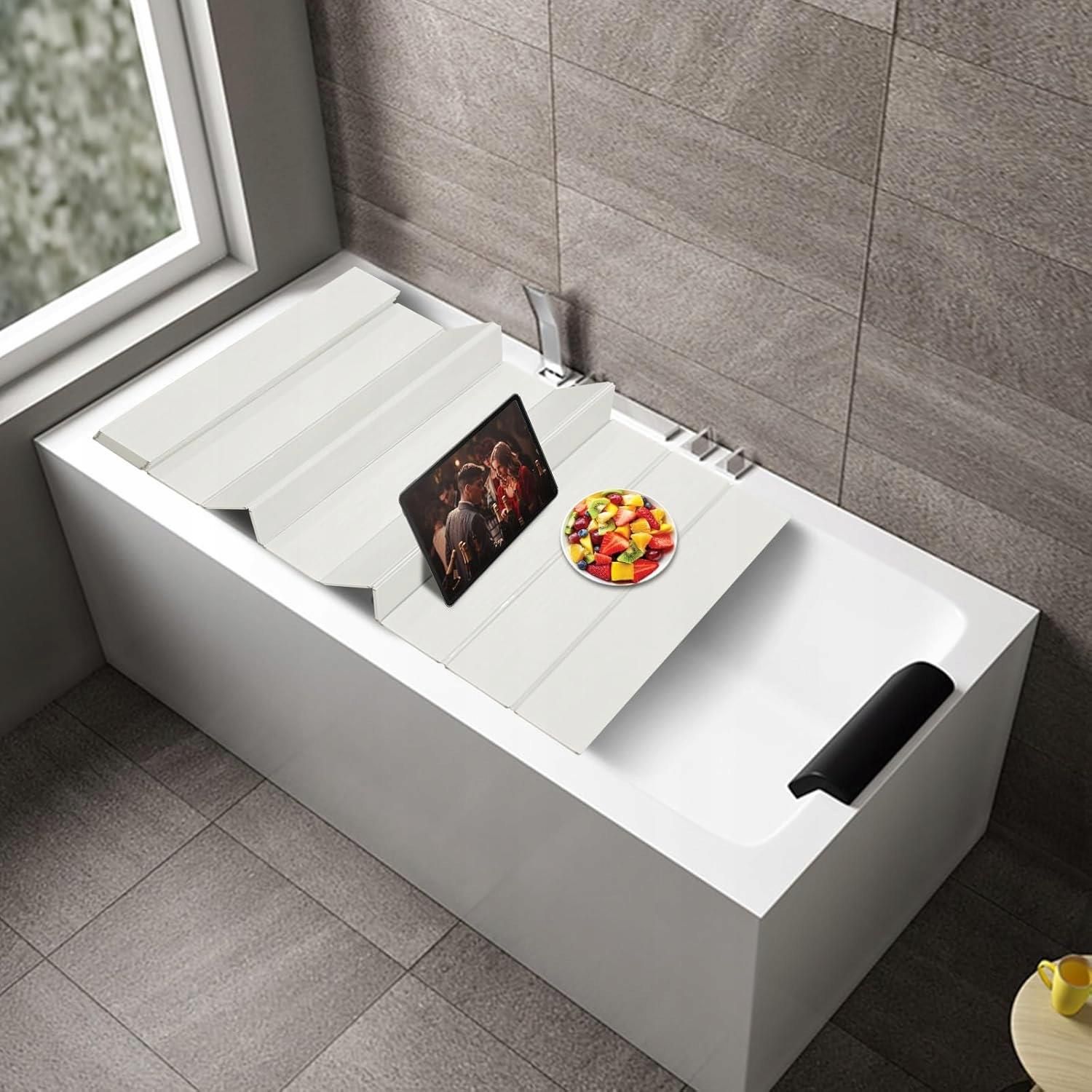 Osłona termiczna na wannę 💎 Pozwala na utrzymanie temperatury wody przez dłuższy czas - para wodna nie ucieka z wanny zapewniając komfort cieplny na dłużej 💎 Modułowa, 16-segmentowa konstrukcja pozwala na dopasowanie do każdej wanny o długości do 170 cm i szerokości mniejszej niż 75 cm 💎 Praktyczna podstawka - sztywna konstrukcja pozwala na korzystanie z osłony jak ze stolika nawannowego 💎 Po kąpieli zapobiega zbieraniu się w wannie brudu i kurzu 💎 Czyszczenie polega na przetarciu osłony wilgotną szmatką - jest szybkie, wygodne i praktycznie nieczasochłonne