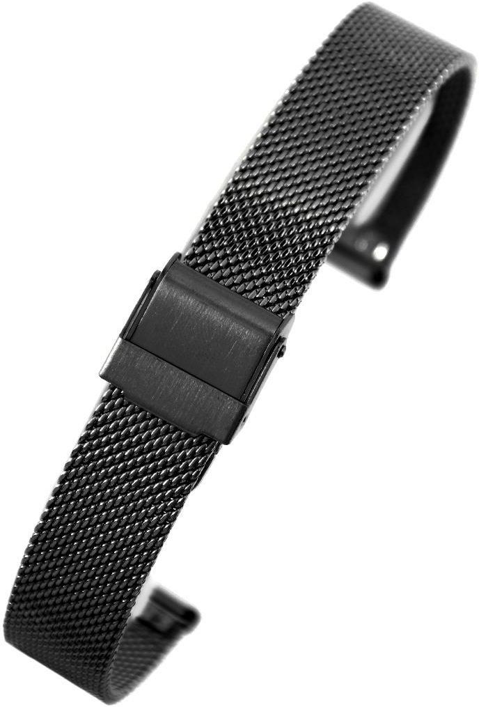 Stalowa bransoletka typu mesh z dodatkowym zamknięciem Pasuje zegarków ze standardowym mocowaniem 14 mm. Producent PACIFIC. Materiał: Stal. Kolorystyka: Kolor czarny, Wymiary: szerokość przy mocowaniu: 14 mm długość części z zapinką: 91 mm długość części z regulacją: 115 mm