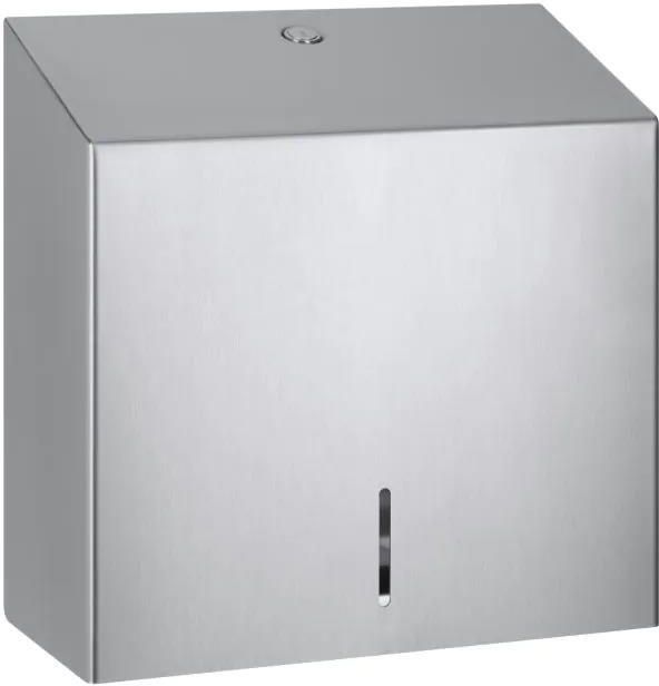 Stella 30.201-ASB pojemnik na ręczniki papierowe pojedyncze / stal 5908219758963 Stella 30.201A-SB pojemnik na ręczniki papierowe pojedyncze / stal szczotkowana WYMIARY: 25.5 × 12 × 26.5 cm pojemność do 500 szt. ręczników nadaje się do toalet i pomieszczeń w obszarach publicznych o dużym natężeniu ruchu wytrzymała obudowa wykonana ze z wysokiej jakości stali nierdzewnej, powierzchnia szczotkowana (matowa) łączenia boków spawane i szlifowane zaokrąglenia boków nadają lekkości kształtu urządzeń dodatkowe zagięcia dolnych krawędzi obudowy wzmacniają sztywność i odporność na akty wandalizmu pojemnik zabezpieczony stalowym zamkiem na klucz zamek zlicowany z powierzchnią urządzenia ukryte zawiasy na froncie obudowy wycięcie umożliwiające kontrolę ilości ręczników do montażu ściennego w komplecie dwa klucze do zamka oraz zestaw mocujący do ściany (standardowe kołki, nierdzewne wkręty)