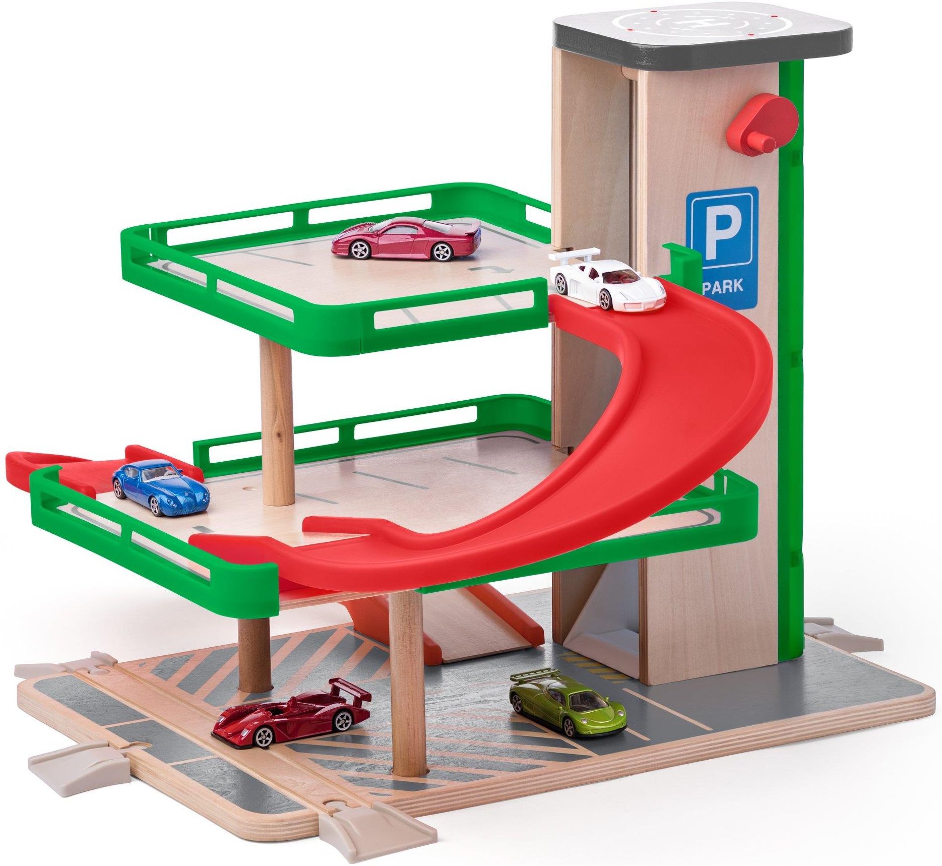 ZABAWKA DLA CHŁOPCA GARAŻ Z AUTKAMI SIKU OPIS PRODUKTU Drewniany parking o trzech poziomach to marzenie niejednego miłośnika motoryzacji, samochodów i zabawy w odgrywanie ról. Dodatkiem do tego zestawu jest pięć oryginalnych pojazdów SIKU, uwielbianych przez małych fanów pojazdów. Zestaw wykonany z trwałych materiałów będzie długo służył. Dzięki możliwości łączenie go np. z torami i kolejkami istnieje możliwość rozbudowy zestawu o wciąż nowe elementy. Można również dodać więcej samochodzików, które macie już u siebie. Zestaw zawiera: trzy kondygnacje do parkowania: parter, pierwsze i drugie piętro windę z pokrętłem tak, aby można ją było podnosić i opuszczać dwa zjazdy z wyższych kondygnacji parking dla helikoptera na górze windy 4 końcówki do zjazdu 5 autek SIKU - każde autko jest inne i w innym kolorze. Na wyższych piętrach znajdują się bandy, które chronią pojazdy przed wypadnięciem. Na parking mogą wjeżdżać również inne autka innych producentów o podobnej wielkości. Drewniany parking to doskonała zabawka drewniana na wiele godzin zabawy autkami! Uwaga: zabawka zawiera tyle elementów ile jest w opisie. Na zdjęciach pokazano autka, tory kolejowe, pociąg jako możliwość doposażenia i jeszcze większych możliwości zabawki. Szukasz solidnego prezentu dla chłopca? Ta zabawka do idealna propozycja. Wymiary kolorowego opakowania: 47 x 31 x 12cm Wiek: 3+ Referencja: WD93070 Deklaracja zgodności CE Opis produktu stanowi przedmiot autorskich praw majątkowych, praw własności przemysłowej, w tym praw z rejestracji znaków towarowych oraz praw do baz danych i jako takie korzystają z ustawowej ochrony prawnej. Jego powielanie, kopiowanie i używanie jest zabronione.