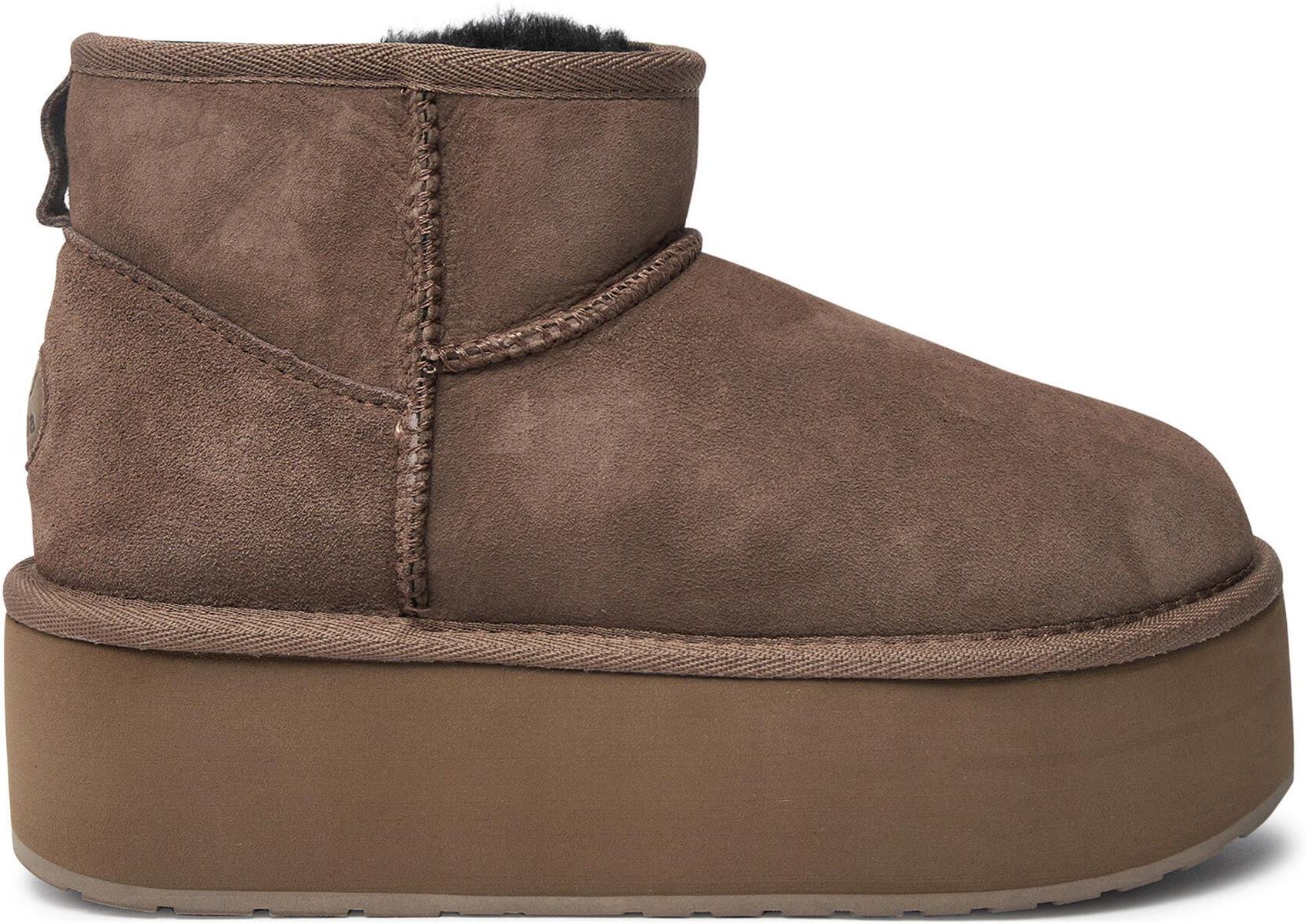 EMU Australia Botki Damskie Stinger Micro Flatform Coriander W13082 Botki, śniegowce damskie marki EMU Australia. Specyfikacja: Marka: EMU Australia Model: W13082 Coriander Kolor: Coriander Wysokość obcasa/podeszwy: 5 cm Wierzch: skóra naturalna zamszowa Wnętrze: wełna owcza Wkładka: wełna owcza Materiał podeszwy: wysokogatunkowe tworzywo Nosek: zamknięty/ okrągły Kształt obcasa: platforma Rodzaj zapięcia: wsuwane Poszczególne rozmiary dostępne są na osobnych aukcjach