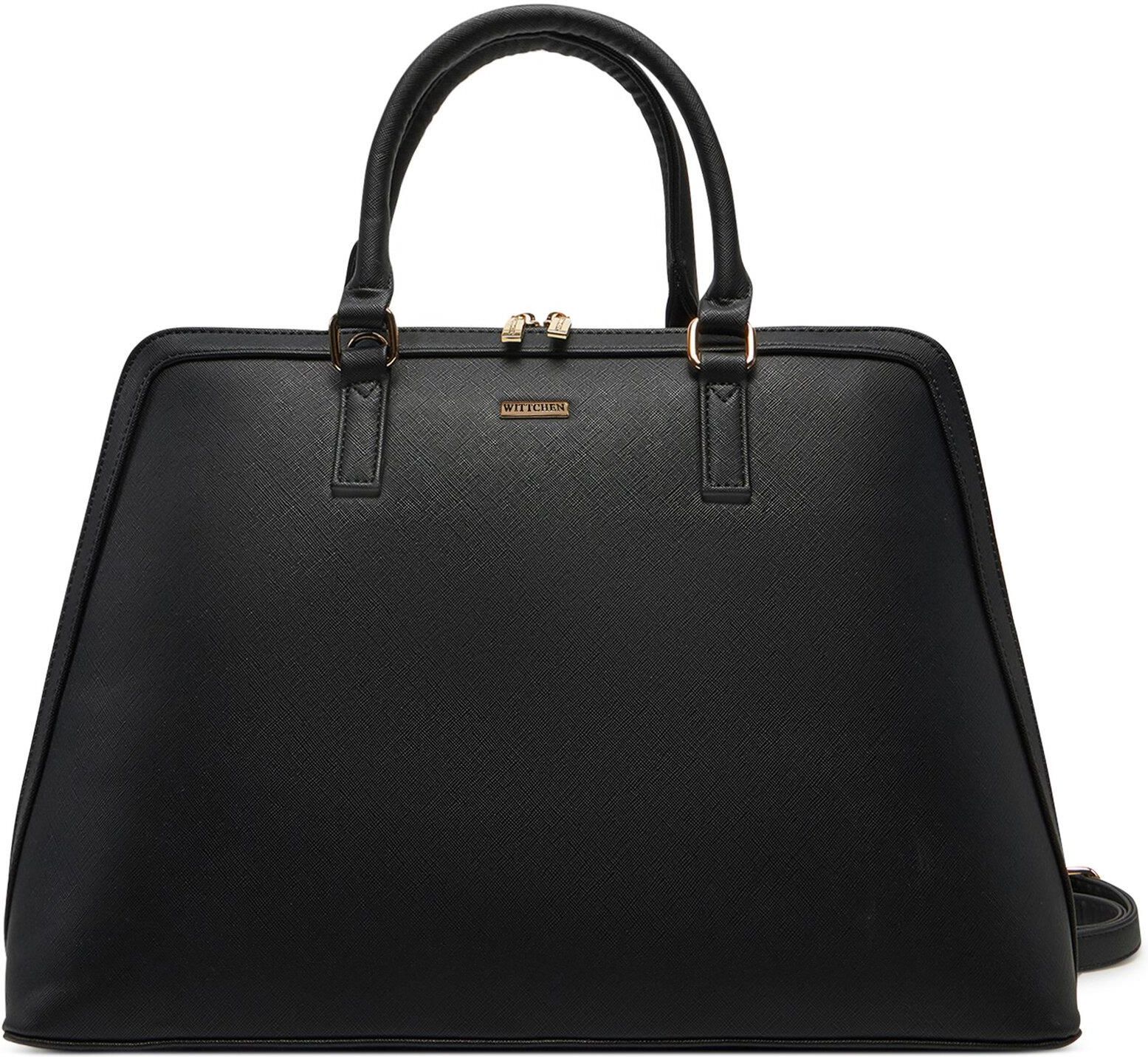 Elegancki kuferek z ekoskóry Nasz damski kuferek to idealne połączenie stylu i funkcjonalności, który oferuje dwie solidne rączki, regulowany pasek oraz kieszeń na laptopa. To doskonały wybór dla nowoczesnych kobiet, które cenią estetykę i wygodę. Dla kogo? Kuferek został stworzony z myślą o dynamicznych kobietach, które szukają eleganckiego rozwiązania zarówno do pracy, jak i na spotkania towarzyskie oraz codzienne wyjścia. Nasza rada: Doskonale komponuje się zarówno z eleganckimi garniturami, jak i casualowymi stylizacjami. Połącz kuferek z klasycznymi, czarnymi szpilkami, aby stworzyć perfekcyjny outfit do biura lub na formalne spotkanie. Kluczowe cechy: Materiał: Wykonany ze skóry ekologicznej o fakturze saffiano, która charakteryzuje się dużą trwałością i odpornością na zarysowania. Detale: Dzięki widocznemu logo producenta na przodzie, każdy Twój outfit zyska na wyrazistości, a Ty poczujesz się pewnie, nosząc akcesorium, które wyróżnia się na tle innych. Praktyczne wnętrze: Kieszeń na laptopa (do 27 cm x 33 cm) zapewnia bezpieczeństwo i wygodny dostęp do sprzętu elektronicznego. Dodatkowo, wewnątrz znajduje kieszonka na zamek na cenne akcesoria. Podszewka z poliestru: Trwała i łatwa w pielęgnacji, zachowuje estetyczny wygląd kuferka na dłużej. Wygodne i funkcjonalne rozwiązania: Komfort noszenia: Regulowany i odpinany pasek pozwala dostosować długość do własnych preferencji, a dwie solidne rączki zapewniają wygodę i trwałość przez cały dzień. Przemyślana organizacja: Wewnątrz kuferka znajdują się dwie otwarte kieszenie, które są idealne do przechowywania drobnych przedmiotów, takich jak klucze, telefon czy kosmetyki. Dzięki nim łatwo utrzymasz porządek w środku kuferka i szybko znajdziesz to, czego potrzebujesz. Bezpieczeństwo: Zamykany na suwak, kuferek zabezpiecza zawartość przed przypadkowym otwarciem i niepożądanym dostępem. Wybierając nasz kuferek, inwestujesz w produkt, który łączy elegancję, funkcjonalność i trwałość.