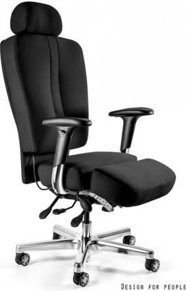 - Regulacja głębokości i wysokości siedziska- Regulacja kąta nachylenia siedziska- Regulacja kąta nachylenia części podkolanowej- Regulacja wysokości i kąta nachylenia zagłówka- Regulowane podłokietniki (góra-dół) wykonane z tworzywa z miękką, wyprofilowaną nakładką PU- Regulacja podparcia lędźwiowego za pomocą pompowanych poduszek- Mechanizm asynchroniczny, pozwalający na niezależną regulację oparcia od siedziska lub swobodne odchylanie oparcia wraz z siedziskiem- Możliwość pochylenia oparcia do przodu (kąt ujemny)- Podstawa jezdna wykonana z polerowanego aluminium- 2 lata gwarancji - Maksymalne obciążenie 130 kg Odporność tkaniny 26-28 Black Fabric na ścieranie - 110 000 cykli Martindale'a Fotel spełnia normy:BS 5459-2:2000**- norma dotyczy biurowych krzeseł stojakowych dla użytkowania przez ludzi o masie do 150 kg oraz dla użytkowania do 24 godzin dziennie