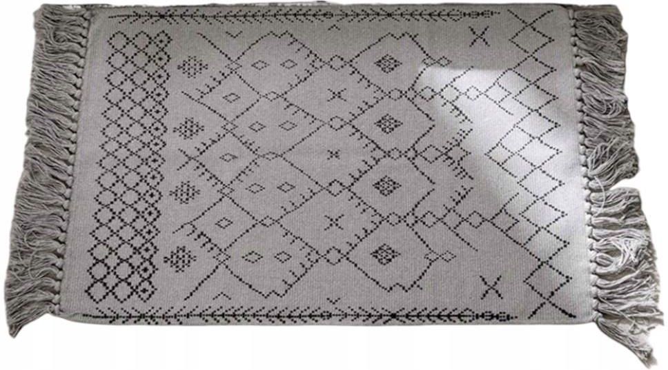 Produkt fabrycznie nowy, nieużywany w oryginalnym opakowaniu.Boho dywanik do salonu, miękka bawełna, vintage, dywan z frędzlami do sypialni, duża zmywalna tkana, mata podłogowa, geometryczny bieżnik do kuchni, korytarza, pralni, łazienki, 60 cm x 90 cmMarka: hi-homeRozmiar: 60x90 cmMateriał: BawełnaKolor: szary, czarnyOdporność na plamy: takWzór: GeometrycznyKształt: Prostokąt