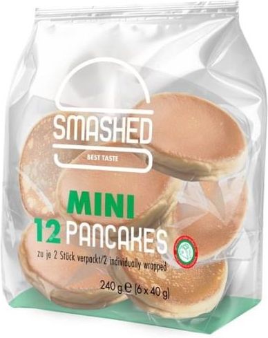 Dan Cake Smashed mini Pancakes 240g Możliwość zakupu w opakowaniu zbiorczym: 8 sztuk. Dwa okrągłe naleśniki w stylu amerykańskim. Informacje dla alergików: produkt może zawierać nasiona sezamu i jaja. Składniki: mąka pszenna, jaja z chowu ściółkowego, glukoza, woda, cukier, olej rzepakowy, mleko w …
