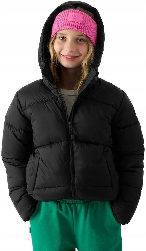 Dziewczęca kurtka puchowa 4F DJAF450 20S czarny (140cm) Skała