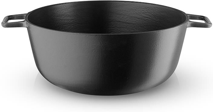 Garnek żeliwny Cast Iron duńskiej marki Eva Solo. Idealny do zapiekania potraw w piekarniku, długiego duszenia np. gulaszy, gotowania powolnego w stylu slow cooking. Kolekcja Cast Iron to naczynia odlane ze specjalnego żeliwa, o 10% lżejszego od tradycyjnego. Świetny wybór do dłuższego przygotowania potraw w niższej i średniej temperaturze, ze względu na właściwości żeliwa, które długo utrzymuje ciepło, a przy tym równomiernie je rozprowadza. Żeliwo jest również odporne na bardzo wysokie temperatury, nawet do 400 C°. Nadzwyczajna wytrzymałość dodatkowo pokrytego wzmacniającą powłoką żeliwa sprawia, że naczynia Cast Iron mogą z powodzeniem służyć przez pokolenia. Garnków i patelni Cast Iron można używać na wszystkich rodzajach kuchenek, także na indukcyjnych. Opcjonalnie dostępna jest pokrywka do garnka wykonana ze szkła i stali. Producent zaleca ręczne mycie naczyń Eva Solo Cast Iron. Materiał: żeliwo, stal nierdzewna Kolor: czarny Pojemność: 8 l Średnica: Ø32 cm Pole indukcyjne: Ø21 cm Szerokość: 42 cm Wysokość: 14 cm Projekt: Ole Palsby
