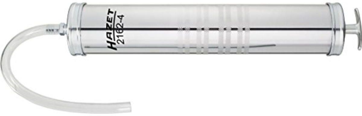 Wryskarka do zasysania i wyciskania Hazet 2162-4 1 szt. HAZET Wysokowydajna wtryskarka do zasysania i wyciskania 2162-4 Wyposażenie: Rozlana ciecz może zostać bez problemu zassana z powrotem · Wraz z elastycznym przewodem wężowym — wylot · Materiał obudowy: stal, ocynkowana · Pojemność: 500 ml · Wewnętrzna średnica węża: 9,5 mm · Zewnętrzna średnica węża: 12,5 mm · Uszczelki z kauczuku NBR · Do olejów silnikowych o lepkości od 30 do 68 · Nie nadaje się do cieczy zawierających kwasy (erozyjnych) · Masa netto: 085 kg · Pojemność: 05 l