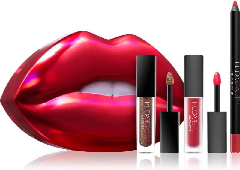 Huda Beauty Contour & Strobe Lip Set zestaw upominkowy odcień Heartbreaker nad Shameless 3 szt. Skała