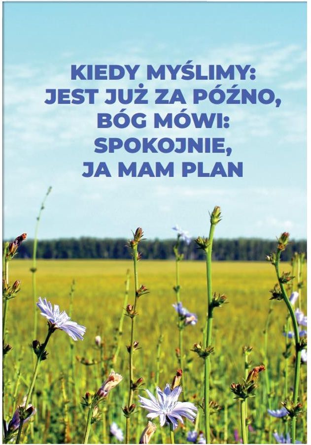 Kiedy myślimy: jest już za późno, Bóg mówi: spokojnie, Ja mam plan Wyjątkowy plakat z przesłaniem na każdy dzień w eleganckiej ramce w kolorze białym. Do zawieszenia na ścianie lub postawienia na biurku.