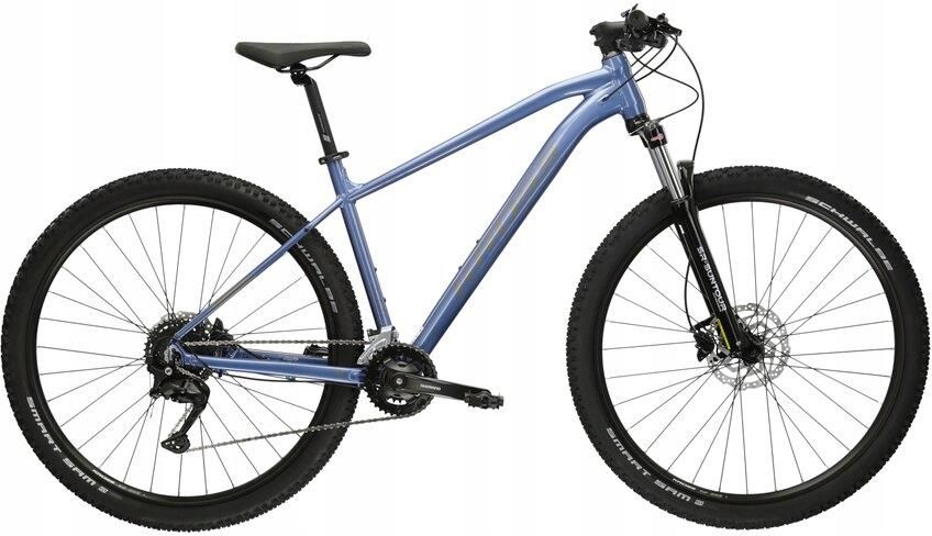 Rower górski KROSS LEVEL 2.0 29" L (19") NIEBIESKI SZARY Kross jest liderem sprzedaży rowerów w Polsce. W sezonie 2022 sprzedaż rowerów wzrosła aż o 21%. Cechuje go pełen profesjonalizm i wysoka jakość wykonania. Kross w swojej kolekcji posiada rowery do różnych zastosowań: górskich, szosowych, elektrycznych, turystycznych, miejskich i dziecięcych. SHIMANO jest największą na świecie firmą produkującą części rowerowe. To najbardziej znana i ceniona marka na rynku, a jej komponenty są wykorzystywane w większości rowerów. SUGEROWANY WZROST: 180-188 KROSS Level 2.0 to uosobienie uniwersalności. Rower górski, który zarówno odnajdzie się w mieście, jak i w terenie. Wyposażyliśmy go w amortyzowany widelec, a ramę wykonaliśmy z aluminium lite. To nie jedyne technologie, które znajdują się w tym rowerze. KROSS Level 2.0 to rower do wszystkiego. Udało nam się to uzyskać dzięki odpowiedniej geometrii roweru, która nie wymusza sportowej, agresywnej pozycji. Pozwala to na odciążenie przedramion oraz lepszą obserwację tego, co dzieje się przed nami na drodze. Wyposażyliśmy go w sprawdzone elementy napędu od japońskiej firmy Shimano. W KROSS Level 2.0 zamontowaliśmy napęd 2x8 umożliwiający komfortową jazdę w terenie oraz mieście. Do tego dochodzą hamulce tarczowe Shimano. Dzięki nim modulacja siły hamowania jest dużo łatwiejsza niż w przypadku klasycznych hamulców typu v-brake. Do produkcji ramy wykorzystaliśmy aluminium 6061, będące doskonałym kompromisem pomiędzy wysoką sztywnością oraz niską masą. Charakteryzuje się wysoką odpornością na warunki zewnętrzne, złamania i uderzenia. W ramie zastosowaliśmy wewnętrzne prowadzenie linek, dzięki czemu uzyskaliśmy estetyczną i elegancką ramę. Wewnętrzne prowadzenie linek pozwala także na łatwiejsze utrzymanie roweru w czystości oraz minimalizuje ryzyko zaczepienia linką o korzenie w terenie. W rowerze zainstalowany został amortyzowany widelec SR Suntour XCM RL ułatwiający jazdę po nierównościach w terenie oraz pokonywanie miejskich dróg rowerowych. Na kierownicy znajduje się manetka blokady umożliwiająca usztywnienie amortyzatora, przekładając się na lepszą efektywność pedałowania. Żeby zapewnić wysoką przyczepność na leśnych ścieżkach wyposażyliśmy koła w opony Schwalbe Smart Sam SPECYFIKACJA Rama i widelec WYKOŃCZENIE LAKIERU: POŁYSK MATERIAŁ RAMY: ALUMINIUM LITE WIDELEC: SR SUNTOUR XCM RL SKOK WIDELCA: 100mm TYLNY AMORTYZATOR: BRAK SKOK TYLNEGO AMORTYZATORA: BRAK KOLOR RAMY: NIEBIESKI SZARY POŁYSK Napęd PRZERZUTKA PRZÓD: SIMANO CUES FD U4000 PRZERZUTKA TYŁ: SIMANO CUES RD U3020 MANETKI: SHIMANO CUES U4000 KORBA: SHIMANO FC-U4000 CUES KORONKI: 36T-22T/175MM KASETA / WOLNOBIEG: SHIMANO CUES LG300 ZAKRES KASETY/WOLNOBIEGU: 11-36T ILOŚĆ PRZEŁOŻEŃ: 18 SUPORT: FP-B902 ŁAŃCUCH: SHIMANO LG500 Koła PIASTA PRZÓD: SHIMANO MT200 PIASTA TYŁ: SHIMANO ALTUS MT200 OBRĘCZE: KROSS ALUMINIUM 622X25 OPONY: SCHWALBE SMART SAM 29x2.25 Hamulce HAMULEC PRZÓD: SHIMANO MT200 HAMULEC TYŁ: SHIMANO MT200 DŹWIGNIE HAMULCA: SHIMANO MT200 TARCZE HAMULCOWE: SHIMANO RT10 180 CL TARCZE HAMULCOWE TYŁ: SHIMANO RT10 160 CL Komponenty KIEROWNICA: ALUMINIUM 740 MM 31.8 WSPORNIK KIEROWNICY: ALUMINIUM 70MM/31,8/17° SIODŁO: SELLE ROYAL VIVO PU WSPORNIK SIODŁA: ALUMINIUM 27,2X350MM STERY: FP-H816 O1-1/8" CHWYTY: PROPALM SCALE PEDAŁY: FP-917N Producent zastrzega sobie zmiany w specyfikacji Po wyjęciu z kartonu do przykręcenia pozostają: kierownica, siodełko, przednie koło oraz pedały.