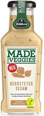Kuhne Sos MADE FOR VEGGIE Prażony Sezam 235ml Możliwość zakupu w opakowaniu zbiorczym: 6 sztuk. Pikantny Sos z olejem sezamowym i prażonym sezamem. Sposób użycia/Zastosowanie: dodawaj do dań według uznania. Składniki: woda, olej rzepakowy, cukier, ocet spirytusowy, skrobia modyfikowana, sos SOJOWY …