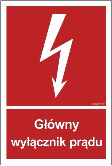 BC008 Znak główny wyłącznik prądu znak główny wyłącznik prądu jest znakiem ppoż, przeznaczonym do oznaczenia miejsca, gdzie znajduje się główny wyłącznik prądu umożliwiający odłączenie całej instalacji elektrycznej. ma to zapewnić większe bezpieczeństwo osobom przebywającym w budynku na wypadek wybuchu pożaru czy też zagrożenia pożarowego. znak główny wyłącznik prądu ma czerwone tło, na którym znajduje się jasny piktogram błyskawicy oraz napis „główny wyłącznik prądu”. znak główny wyłącznik prądu jest dostępny w kilku wariantach. do wyboru są następujące formaty: 5 x 7,4 cm. 10 x 14,8 cm. 15 x 22,2 cm. 20 x 29,6 cm. 25 x 37 cm. 35 x 51,8 cm. 40 x 59,4 cm. 50 x 74 cm Znak Główny wyłącznik prądu wykonany jest również na kilku podłożach:. Folia samoprzylepna. Folia samoprzylepna fotoluminescencyjna. Płyta sztywna 1 mm. Płyta sztywna 1 mm fotoluminescencyjna. Płyta TD fotoluminescencyjna. Folia podłogowa. Folia podłogowa fotoluminescencyjnaKS - Folia podłogowa FOTO. Dostępne podłoża: ks - folia podłogowa foto fn - folia samoprzylepna kn - folia podłogowa zwykła fs - folia samoprzylepna foto. ts - płyta td foto ps - płyta foto 1mm pn - płyta pvc 1mm twarda Marka: SIGNPROJECT