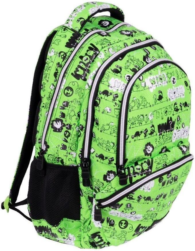 Plecak szkolny duży z 4 suwakami z kolekcji Tandem 2. Główna komora z ochronną przegrodą na laptopa oraz 3 przednie komory zapinane na suwak. 2 łatwo dostępne boczne kieszonki z siatki, np. na butelkę. Regulowane paski. Wyściełane i oddychające plecy. Wzmocniona podstawa. Kolekcja Tandem 2, w której postacie o zupełnie innym charakterze przemierzają noc w tandemie. Dinozaury, krokodyle i kosmici jadą w tandemie, a zabawne tosty, jajka i rogaliki robią to samo. Wszyscy pracują w grupach i wiosłują w tym samym kierunku. Skład: Materiał zewnętrzny i wewnętrzny 100% poliester. Rozmiar: 46,5 x 30 x 17 cm. Pojemność: 25 litrów