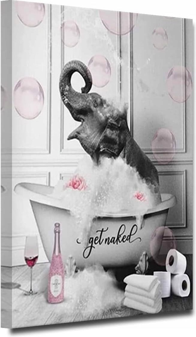Plakat naścienny Obraz na Płótnie Słoń w Wannie Produkt fabrycznie nowy, nieużywany w oryginalnym opakowaniu. Wyjątkowy plakat naścienny przedstawiający zabawną scenę: słoń w wannie z różowymi bąbelkami. Idealny dodatek do łazienki, który doda uroku i humoru wnętrzu. Obraz wykonany na płótnie o …