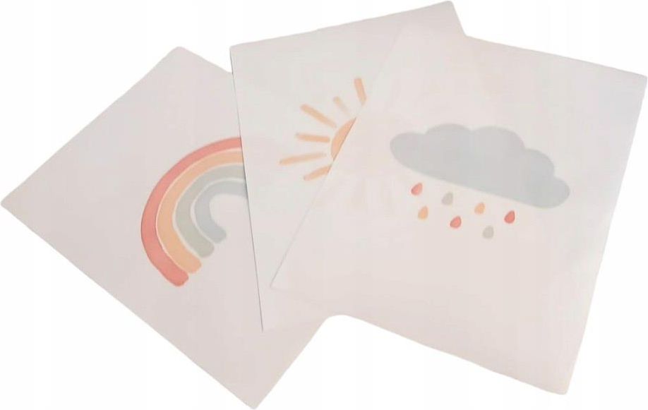 Plakaty do Pokoju Dziecięcego Dekoracja 3szt Towar powystawowy, outletowy, stoki magazynowe. Urządzenia mogą posiadać opakowania zastępcze lub oryginalne. Zestaw plakatów Premium: Trzy starannie dobrane plakaty w tym samym stylu. 3 plakaty tworzące kolaż głosowy na ścianie. Wysokiej jakości płótno: nasze plakaty drukowane są na wysokiej jakości płótnie. Jest mocniejszy niż papier i nie gniecie się. Bezzapachowy, może być stosowany również przez alergików oraz w pokojach dziecięcych. Uroczo ilustrowane obrazki do pokoju dziecięcego to nie tylko czysta dekoracja, ale pobudzają wyobraźnię Twojego dziecka i pobudzają jego kreatywność. Dekoracja ścienna do pokoju dziecięcego: zestaw obrazków w formacie DIN A4 z tęczą, chmurkami i balonem pasuje do każdego pokoju dziecięcego. IDEALNY POMYSŁ NA PREZENT: Idealny prezent na baby shower, narodziny, czy chrzciny. Śliczne ilustracje, które idealnie pasują do dziecięcego pokoju. Nieoprawione: Zestaw plakatów nie zawiera ramki. . . Specyfikacja: Wymiary: 30x40 cm Liczba przedmiotów: 3 Materiał: Papier Marka: RAILONCH kod towaru 9087
