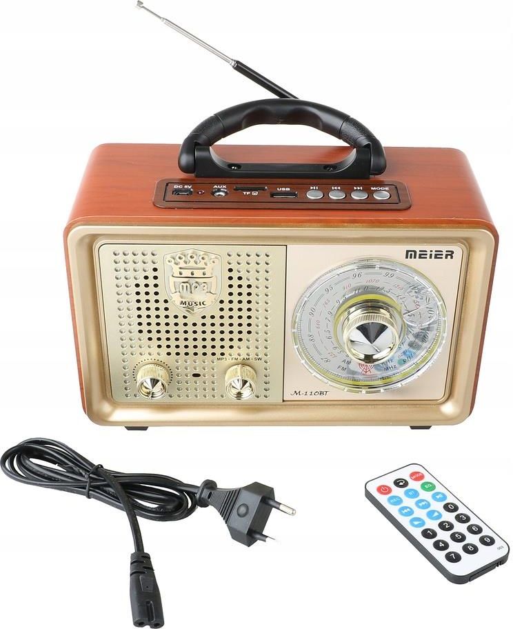 Radio przenośne z funkcją bluetooth Przydatne w każdym domu jak również w plenerze, może służyć również jako głośnik bluetooth. Cechy produktu Radio stylizowanie na retro Włącznik z płynną regulacją głośności Obudowa z tworzywa na wzórdrewna Składany uchwyt do przenoszenia Podświetlana tarcza Tuner wbudowany w urządzenie umożliwia odbiór fal z pasm FM, AM oraz SW Regulator dostrojenia Funkcja Bluetooth - możliwość połączenia np. z telefonem Wbudowany akumulator Możliwość zasilania na baterie R20 Wejście na kartęTF Funkcje odtwarzania: poprzednia piosenka, pauza, następna piosenka Wejście USB 2.0, możliwość odtwarzania plików mp3 Kabel sieciowy w zestawie Obrotowa antena teleskopowa Wejście AUX W zestawie również pilot do zdalnego sterowania Wymiary: 23,2 x 15,8 x 10,8 cm Zakresy radia FM: 87 - 108 MHz AM: 522 - 1620 KHz SW: 5.9 - 18.0 MHz UWAGA! Radio występuje w różnych kolorach, wysyłamy wyłącznie losowo