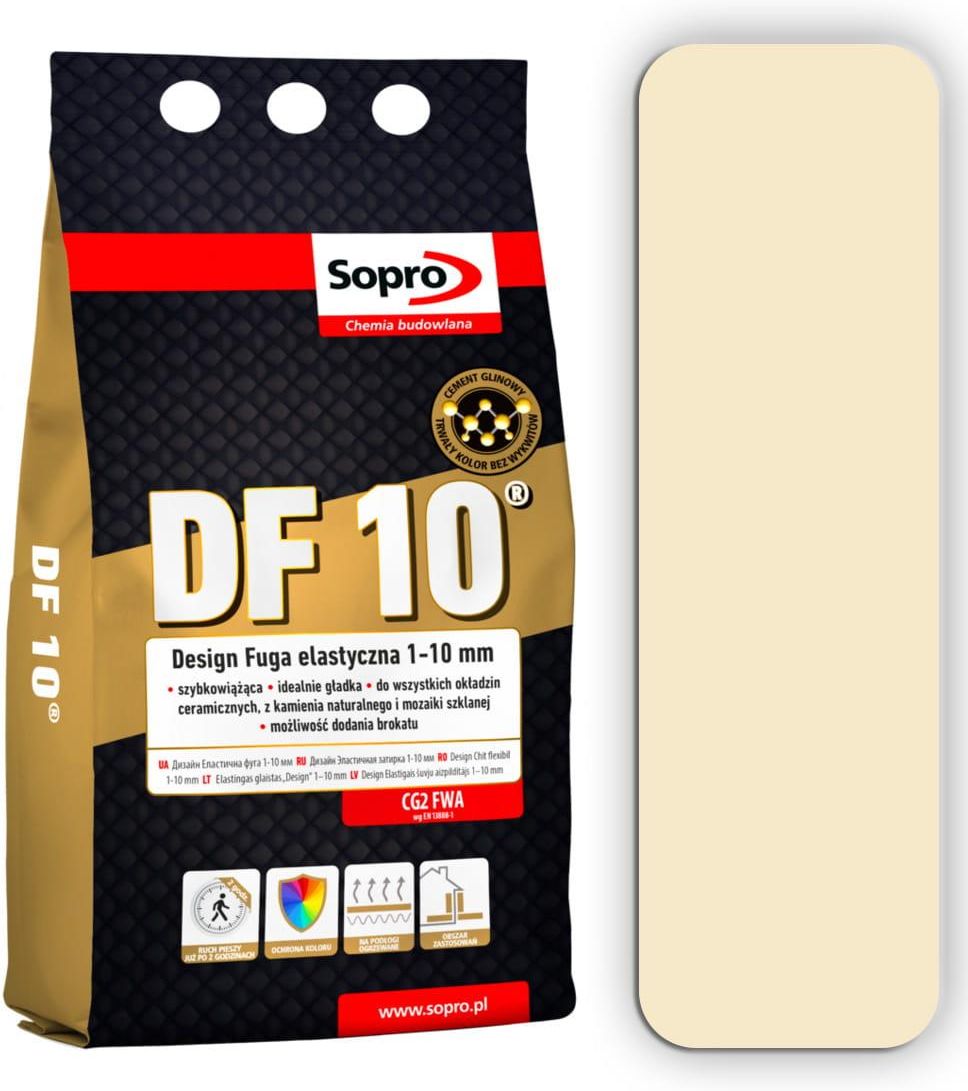 SOPRO DF 10 Design cementowa fuga elastyczna Pojemność: 4kg Kolor: Jasny beż 29 SOPRO DF 10 Cementowa zaprawa fugowa o trwałych barwach i wysokiej wytrzymałości, do spoinowania wszystkich okładzin ceramicznych i z kamienia naturalnego, mozaiki szklanej oraz płyt z konglomeratów. Zapewnia trwale …