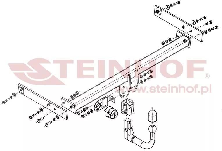 Hak wypinany pionowo STEINHOF V-138 Dane techniczne Homologacja: e20 Rodzaj kuli: Wypinana pionowo Parametr "D" [kN]: 11,6 Max. uciąg [kg]: 2500 Max. nacisk pionowy [kg]: 100 Hak wypinany pionowo STEINHOF V-138 pasuje do poniższych aut:Kliknij tutaj aby rozwinąć listę(kliknij markę aby sprawdzić kompatybilne modele) SEAT SEAT Alhambra II [ 2010-2012 ] Wymaga zdjęcia / podcięcia zderzaka: TAK / TAK VW VW Sharan II [ 2010-2012 ] Wymaga zdjęcia / podcięcia zderzaka: TAK / TAK Hak wypinany pionowo STEINHOF to doskonały wybór dla kierowców, którzy oczekują połączenia estetyki, wytrzymałości i komfortu użytkowania. System pionowego wypinania sprawia, że hak jest praktycznie niewidoczny, gdy nie jest używany, dzięki czemu samochód zachowuje elegancki wygląd i linię nadwozia. Prosty i szybki montaż to jedna z głównych zalet tego rozwiązania. Automatyczny mechanizm blokujący pozwala w kilka sekund zamontować lub wypiąć kulę haka – bez potrzeby używania narzędzi. W komplecie znajduje się szczegółowa instrukcja, a składane gniazdo elektryczne umożliwia utrzymanie tylnej części auta w nienagannym, estetycznym stanie. Każdy hak holowniczy STEINHOF projektowany jest z myślą o konkretnym modelu samochodu, co gwarantuje idealne dopasowanie i łatwy montaż bez konieczności spawania lub modyfikacji konstrukcji pojazdu. Całość jest solidna, bezpieczna i gotowa do użytku od razu po instalacji. System pionowego wypinania doskonale sprawdza się podczas holowania przyczep, montażu bagażników rowerowych lub transportu akcesoriów. Gdy hak nie jest potrzebny, można go błyskawicznie zdemontować i schować do bagażnika – zachowując pełną estetykę i funkcjonalność auta. Wszystkie haki holownicze marki STEINHOF wykonane są z wysokogatunkowej stali i pokryte trwałą powłoką proszkową, która skutecznie chroni przed korozją i czynnikami atmosferycznymi. To gwarancja trwałości, bezpieczeństwa i niezawodności w codziennym użytkowaniu. Dodatkowo każdy hak holowniczy STEINHOF objęty jest 2-letnią gwarancją producenta, co potwierdza wysoką jakość wykonania i dbałość o użytkownika. Co zawiera zestaw Belkę haka idealnie dopasowaną do Twojego auta Kulę wypinaną pionowo Dwa kluczyki zabezpieczające przed kradzieżą Zestaw montażowy (wsporniki, śruby, podkładki, etc.) Osłonkę kuli (kapturek) Homologację - tabliczka znamionowa na belce - wymagana do rejestracji! Składaną podstawkę pod gniazdo elektryczne Instrukcja montażu Hak standardowo nie zawiera w zestawie wiązki elektrycznej. Odpowiednio dopasowane zestawy elektryczne znajdziesz poniżej. Producent lub osoba odpowiedzialna GRUPA STEINHOF SPÓŁKA Z OGRANICZONĄ ODPOWIEDZIALNOŚCIĄ Przemysłowa 27A 33-100 Tarnów sekretariat@steinhof.plOstrzeżenia dotyczące bezpieczeństwa: Montaż wyłącznie przez wykwalifikowany warsztat. Nie przekraczać maksymalnego uciągu i nacisku na kulę określonych przez producenta. Przed każdą jazdą sprawdzić mocowanie i stan haka. Nie używać haka z oznakami uszkodzenia lub luzami. Nie modyfikować elementów haka ani mocowań. Regularnie kontrolować momenty dokręcenia i stan połączeń. Używać wyłącznie do holowania pojazdów zgodnych z homologacją.