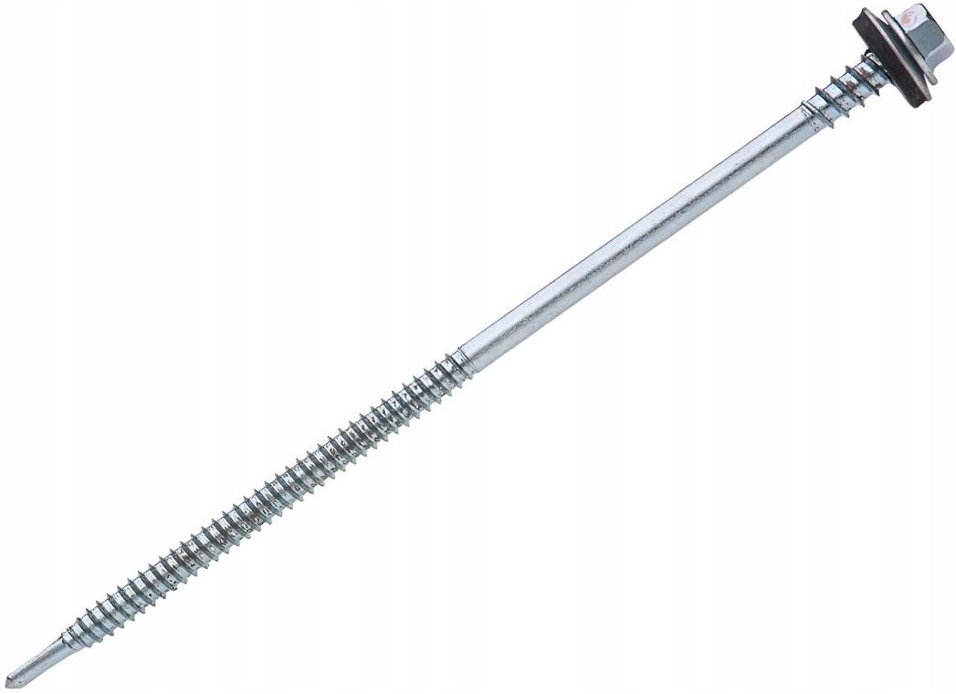 WKRĘTY SAMOWIERCĄCE DO PŁYT WARSTWOWYCH - 6,3/5,5x125 mm - 50 sztuk PARAMETRY TECHNICZNE Średnica wkręta [D]: 5,5 mm Długość wkręta [L]: 125 mm Łeb: sześciokątny, klucz 8 Podkładka: aluminiowa, z uszczelką EPDM Średnica podkładki: 19 mm Ilość w opakowaniu jednostkowym (opJ): 50 sztuk Zakres grubości mocowanej płyty: 70-100 mm Zdolność przewiercania: 6,0 mm Minimalna grubość podłoża: 2,0 mm Normy: AT-15-7794/2015, PN-EN 10346:2015 Materiał wkręta: stal węglowa utwardzana cieplnie, Powłoka: ocynk min 20 μm Klasa korozyjności środowiska: C4 Zalecana prędkość obrotowa: 1500 rpm Moment dokręcający: 5 Nm OPIS Wkręty samowiercące do płyt warstwowych z podkładką EPDM TRÓJKA do profili stalowych o grubości do 6mm. Wykonane ze stali ocynkowanej. Montaż wykonuje się bez wcześniejszego nawiercania. Wkręty posiadają końcówkę samowiercącą oraz podwójny gwint przeznaczony do montażu w podłożu stalowym. Gwint pod łbem pozwala na umocowanie płyty do podłoża bez wgnieceń powierzchni płyty. Niezbędne jest dokładne dopasowanie długości wkręta do grubości płyty. Wkręty dostarczane są z uszczelką stalową z gumą EPDM. Wkręt posiada główkę pod klucz 8mm. Zalety Zdolność przewiercania do 6mm, Gwint o zwiększonej średnicy (6,3mm) zapewnia prawidłowe rozłożenie podkładki EMPD do zamocowanej płyty Powłoka ocynkowana zabezpiecza wkręta przed korozją, Podkładka aluminiowa, z uszczelką EPDM uszczelnia i zabezpiecza przed korozją, bezpieczne, szybkie i ekonomiczne połączenie.