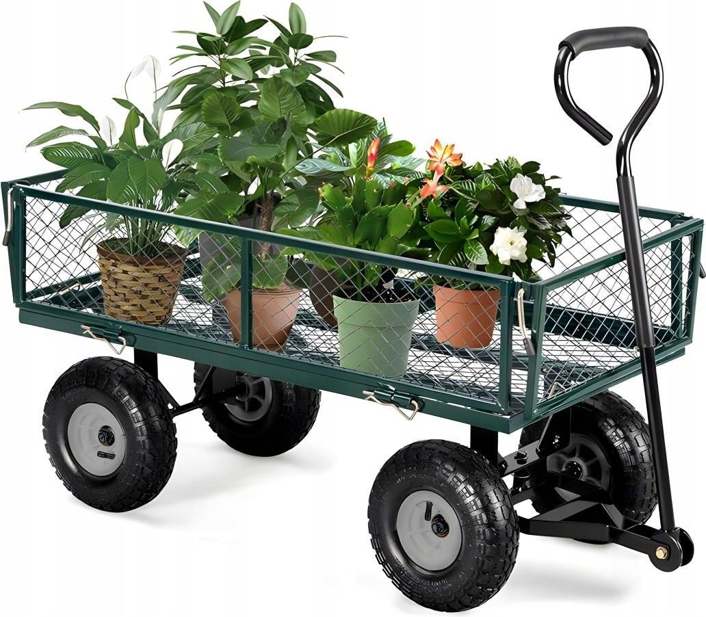 Wózek Transportowy Ogrodowy 200kg Otwierane Burty Duże Pompowane Koła Mult Skała