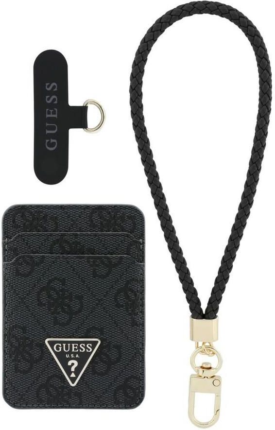 Zestaw portfel + hand strap Guess triangle MagSafe czarny Skała