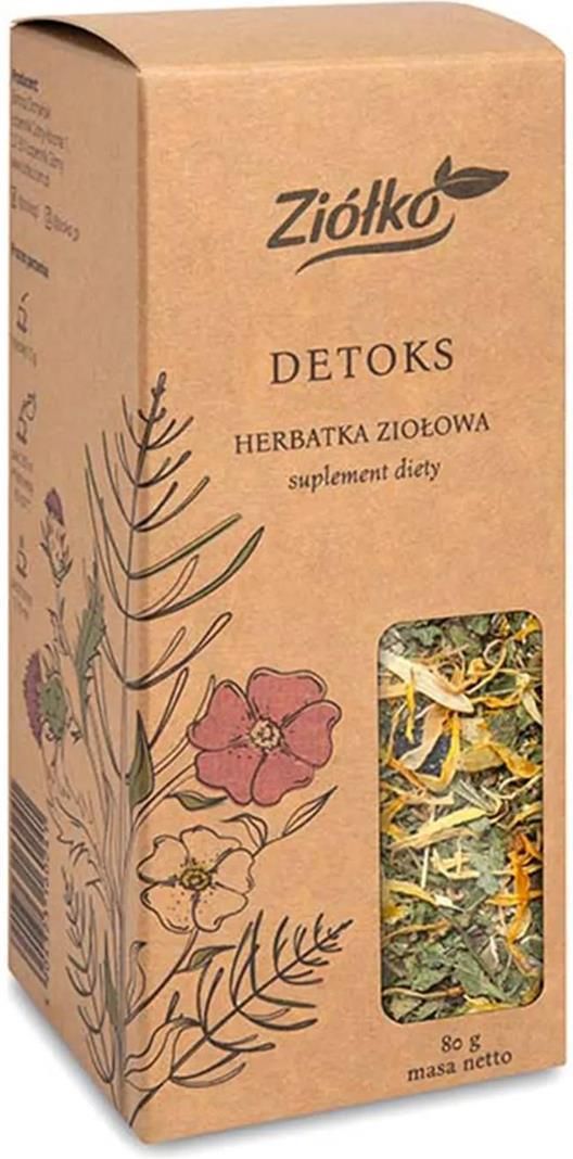 ZIÓŁKO - Detoks, herbata ziołowa, oczyszczanie organizmu, jest suplementem diety zawierającym kompleks naturalnych ziół (takich jak liście pokrzywy lub czystka), które regularnie spożywane sprzyjają wydalaniu szkodliwych metabolitów, wspierają pracę jelit oraz wzmacniają odporność. Składniki: Liść czystka (Cistus incanus) 25%, liść pokrzywy (Urtica dioica) 25%, mielone [nieodtłuszczone] ziarno ostropestu (Silybum marianum) 20%, ziele skrzypu polnego (Equisetum arvense) 10%, owoc aronii (Aronia melanocarpa) 10%, płatki nagietka (Calendula officinalis) 5%, liść oregano (Origanum vulgare) 5%. Masa netto: 80g Właściwości: Herbatka ziołowa na detox to mieszanka wyselekcjonowanych ziół, które mają działania synergiczne. Regularne zażywanie herbatki daje takie efekty, jak: wzmocnienie odporności, wydalanie szkodliwych metabolitów, mikstura wzmaga pracę jelit, a także wspiera procesy metaboliczne. Obecność skrzypu polnego w składzie zapewnia dużą dawkę dobrze przyswajalnego krzemu. Krzem pomaga w regeneracji komórek i uszczelnia naczynia krwionośne. Właściwości oczyszczające naszej ziołowej mieszanki potęguje dodatek ziarna ostropestu. Wpływają korzystnie na pracę wątroby oraz dróg żółciowych. Zalecane dzienne spożycie: Napar można popijać na ciepło lub na zimno — w zależności od tego, jak wolisz. Smakuje doskonale zimą, a także schłodzony latem. Pobudza trawienie oraz pomaga polepszyć przepływ limfy w ciele. Naturalne surowce zielarskie zbierane na terenie Polski z bezpiecznych stanowisk oddalonych od aglomeracji miejskich i tras szybkiego ruchu, tworzą aromatyczny napój pełen smaku kwietnych łąk. Wystarczy zalać gorącą wodą i zaparzać pod przykryciem 15-20 minut. Pić 2 razy dziennie po 1 łyżeczce (1,5g). Nie należy przekraczać zalecanej porcji do spożycia w ciągu dnia wynoszącej 2 łyżeczki (3g). Przeciwwskazania: Nadwrażliwość na którykolwiek ze składników preparatu. W okresie ciąży i karmienia piersią przed zastosowaniem należy skonsultować się z lekarzem lub farmaceutą. Przechowywanie: Przechowywać w miejscu niedostępnym dla dzieci, chronić przed światłem, wilgocią i obcymi zapachami. Ważne informacje: Nie należy przekraczać zalecanej porcji do spożycia w ciągu dnia. Suplement diety nie może być stosowany jako substytut (zamiennik) zróżnicowanej diety ani aktywnego trybu życia. Utrzymanie prawidłowego stanu zdrowia wymaga zrównoważonego i zróżnicowanego odżywiania i prowadzenia zdrowego trybu życia. Istnieje wiele czynników ryzyka choroby. Zmiana jednego z tych czynników ryzyka może wywierać korzystny wpływ lub nie wywierać go. Producent: Bartosz Domański Łopiennik Dolny-Kolonia 1 22-351 Łopiennik Górny