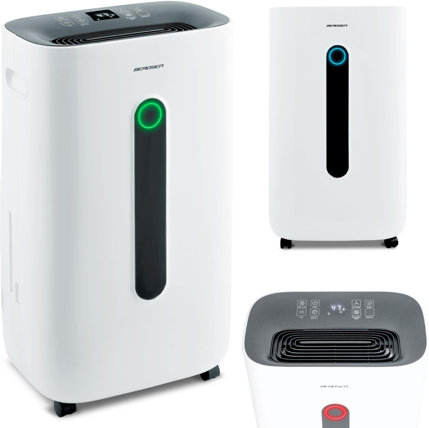 Kompresorowy osuszacz powietrza BD-523 20l/24h Główne cechy: Sześć trybów pracy: normalny/ciągły/wentylacja/suszenie prania/nocny/mocny. Wyświetlacz LCD i dotykowy panel sterowania - soft touch. Higrostat – wyświetla aktualną wilgotność pomieszczenia. Wygodne uchwyty oraz kółka ułatwiające przemieszczanie. Możliwość stałego odprowadzania wody - rurka w zestawie. Możliwość regulacji prędkości wentylatora. Funkcja automatycznego odszraniania. Łatwy do czyszczenia, antybakteryjny filtr cząstek stałych. 24- godzinny Timer. Funkcja child lock (po jej włączeniu inne przyciski są nieaktywne). Funkcja ochrony przed przepełnieniem zbiornika na wodę. Nowoczesny i elegancki! Wydajność Kompresorowy osuszacz powietrza BD-523 to kompaktowe, profesjonalne i funkcjonalne urządzenie pracujące z maksymalną wydajnością 20 000 ml/dobę. Pochłaniacz wilgoci BD-523 działa na zasadzie kondensacji, która skutecznie skrapla wilgoć zawartą w powietrzu. Dzięki temu niweluje natężenie grzybów, pleśniawek i nieprzyjemnych zapachów w pomieszczeniu, podwyższając jednocześnie Twój komfort. W zgodzie z naturą i z najnowszymi wytycznymi W naszym osuszaczu zastosowaliśmy czynnik chłodzący R290, który nie niszczy warstwy ozonowej (niski potencjał ODP) i posiada bardzo niski potencjał globalnego ocieplenia (GWP). Pod względem wskaźników efektywności chłodzenia nie ustępuje starym czynnikom z grupy HCF np. R134A, R404A, ale jest znacznie bardziej przyjazny dla środowiska. Nasze urządzenie spełnia wszystkie normy polskie i Unijne, jest zgodny z unijnymi dyrektywami LVD I EMC. Sterowanie Nowoczesny, dotykowy panel sterowania z systemem soft touch, umieszczony na górnej części osuszacza, zapewni najwyższy komfort użytkowania. Dzięki niemu można regulować wszystkie parametry pracy. Wyświetlacz pokazuje aktualną wilgotność pomieszczenia i wybrane funkcje. Możesz również bez trudu włączyć tryb nocny, który wygasi panel, co pozwoli Ci komfortowo spać lub po prostu, oszczędzić energię. Praktyczne zastosowania - tryb nocny i osuszania prania! Możliwość stałego odprowadzania wody Kiedy zbiorniki na wodę zapełni się, urządzenie automatycznie zatrzyma pracę, oraz poinformuje cię, sygnałem dźwiękowym. Zbiornik bez trudu wyjmiesz, a wodę wylejesz do zlewu. Planujesz dłuższa nieobecność? Żaden problem. Włącz tryb ciągły i podłącz rurkę do stałego odprowadzania wody. Wodę można odprowadzać do miski, wanny czy wiaderka. Rurka do stałego odprowadzania wody znajduje się w komplecie wraz z osuszaczem. Intuicyjne wskaźniki wilgotności pomieszczenia, nie musisz podchodzić do urządzenia, wystarczy, że zerkniesz! Czerwony: powyżej 70% wilgotności Zielony: od 50 do 70% wilgotności Niebieski: poniżej 50% wilgotności Wpisuje się w każdą przestrzeń i jest bardzo wydajny! Dane techniczne: Wydajność osuszania [l/24h]: 20 Przepływ powietrza [m³/h]: 195 Rodzaj osuszacza: kompresorowy Moc znamionowa: 320 W Moc maks. 420 W Zakres regulacji wilgotności [%]: 30 – 80% Głośność maks. 48 dB Zasilanie 220 - 240 V / 50 Hz Pojemność zbiornika na wodę 6,5 l Długość kabla 1,80 cm Zalecana wielkość pomieszczenia: 60 m3 Wymiary 340 x 240 x 570 mm Waga z opakowaniem: 15,5 kg Zmiana koloru lampki kontrolnej / sygnał dźwiękowy Środowisko pracy minimum 5°C Antybakteryjny, filtr cząstek stałych