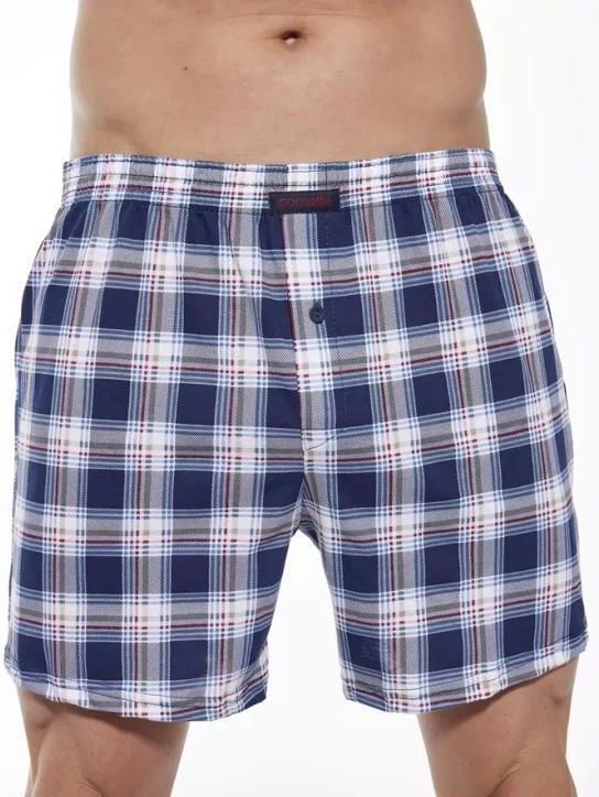 Bokserki męskie o luźnym kroju wykonane z wysokiej jakości bawełny, zapinane na guzik. W pasie wygodna guma w tunelu. Wzór w klasyczna kratkę. Skład: 100% bawełna
