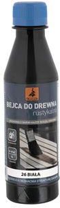 DRAGON Rozpuszczalnikowa Bejca Rustykalna do Drewna 0,2L Kolor: BIAŁA Wnika w strukturę drewna trwale barwiąc jego powierzchnię, podkreślając i wzmacniając rysunek słojów. Łatwo się nanosi. Charakteryzuje się krótkim czasem schnięcia. Pozwala na wyrównywanie barwy podłoża oraz maskowanie różnic pomiędzy odcieniami. WŁAŚCIWOŚCI doskonale barwi twarda powłoka szybkoschnąca podkreśla rysunek słojów zabezpiecza przed UV na zewnątrz i do wewnątrz WYDAJNOŚĆ: 13 - 16 m²/l w zależności od rodzaju i chłonności podłoża CZAS SCHNIĘCIA: ok. 20 minut (w temp. 20 stopni C) SPOSÓB APLIKACJI: pędzel ZASTOSOWANIE Produkt przeznaczony do barwienia elementów drewnianych i drewnopochodnych eksploatowanych wewnątrz pomieszczeń. Nałożenie odpowiedniego lakieru np. poliuretanowego na zabejcowaną powierzchnię zabezpiecza przed szkodliwym działaniem czynników atmosferycznych. Umożliwia to stosowanie bejcy również na zewnątrz. Bejca polecana jest do dekoracji wyrobów takich jak: ramy okienne drzwi wewnętrzne meble boazerie lamperie inne elementy dekoracyjne SPOSÓB UŻYCIA Przygotować elementy do barwienia przez dokładne ich wyszlifowanie, odpylenie, osuszenie i usunięcie z powierzchni żywicy. Najlepiej nanosić na drewno bez wcześniejszych podkładów lub przeszlifowane i oczyszczone z uprzednich środków chroniących przy pomocy „Zmywacza farb i lakierów” DRAGON. Temperatura podłoża, otoczenia, barwionych elementów podczas wykonywania prac powinna wynosić w granicach od +15 ºC do +25 ºC. Przed użyciem zawartość pojemnika należy dokładnie wymieszać. Nie rozcieńczać. Bejcę nanosić pędzlem o miękkim włosiu, wałkiem wzdłuż słoi drewna lub natryskiem pneumatycznym. Dla uzyskania ciemniejszego odcienia zaleca się nałożenie dwóch warstw w odstępach około 3 godziny W celu ochrony przed zabrudzeniami nałożyć lakier po całkowitym wyschnięciu malowanej powierzchni (nie wcześniej niż po 3 godzinach). Zabrudzone narzędzia i świeże plamy z bejcy czyścić wodą. Po zakończeniu prac opakowanie szczelnie zamknąć. Unikać kontaktu ze skórą – trwale barwi. Do barwienia dużych powierzchni należy zawsze używać bejcy z tej samej partii produkcyjnej. Przedstawiony na opakowaniu kolor może nieznacznie różnić się od uzyskanego efektu ze względu na stosowaną technikę drukarską oraz rodzaj drewna, na które będzie nanoszona bejca.