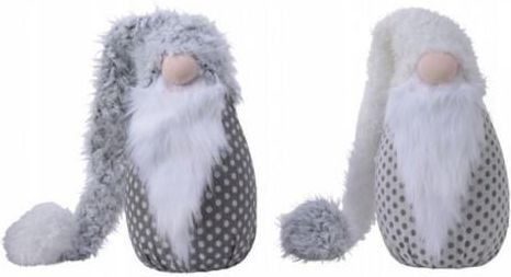 Gnom w czapce LED Figurka świąteczna idealnie wpasuje się w świąteczny klimat. Stanowi oryginalne uzupełnienie wystroju. Dekoracja nada się jako element kompozycji lub samodzielna ozdoba. Można ustawić ją w dowolnym miejscu w mieszkaniu tak by przykuła uwagę zarówno domowników jak i gości. Wykonana z wysokiej jakości tworzywa sztucznego. Gnom posiada świecącą czapkę zasilaną na 3 baterie AA. Produkt dostępny w dwóch wzorach. Wysyłany losowy wzór dostępny w magazynie. Parametry: Marka: Lumineo Materiał wykonania: tworzywo sztuczne Kolor dominujący: biały, szary Wysokość: 40 cm Wysokość z czapką: 90 cm Średnica podstawy: 15 cm Baterie: 3xAA (bez baterii w zestawie) Świecąca czapka