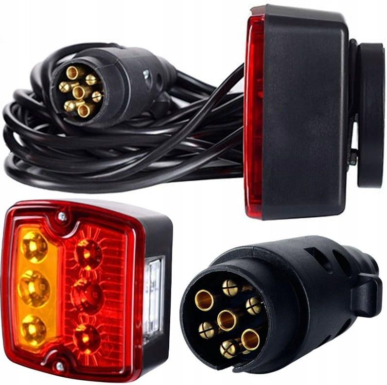 ZESTAW LAMP ZESPOLONYCH MOCOWANIE NA MAGNES 5 m Zestaw lamp zespolonych ZPR 2122 Zestaw lamp HOR 74 na magnes, przewód 5 m + wtyczka 7-pin 12 V (bez oświetlenia tablicy rejestracyjnej) Typ lampy: LED Specyfikacja Lampa diodowa (LED) Kategoria lampy: zespolona tylna Grupa lamp: HOR 74 Strona montażu: uniwersalna Napięcie zasilające: 12/24 V Przewód: 4×0,5 mm2; długość przewodu 2,5 m Ilość diod LED: 6 Wymiary Wysokość: 105.4 mm Długość: 97.4 mm Grubość: 68.2 mm