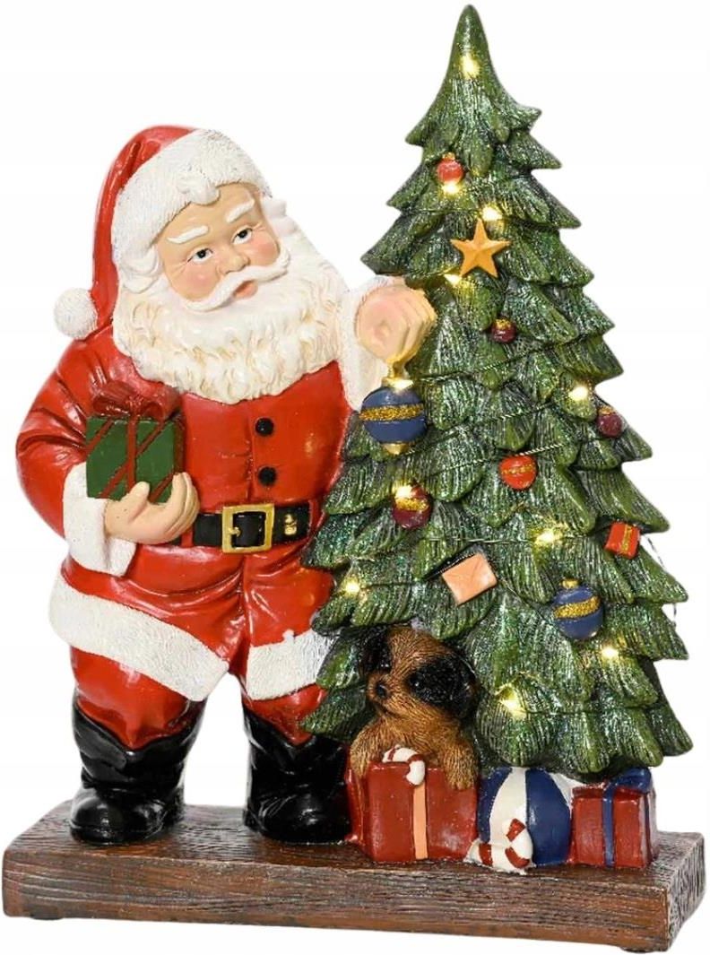 Figurka Mikołaj z drzewkiem świąteczna LED 30cm Dodaj magii do swojego wnętrza dzięki dekoracyjnej figurce Mikołaja z ozdobą drzewka! Subtelne detale, uśmiechnięty Święty Mikołaj i ciepłe światło mikro diod LED tworzą wyjątkowy, świąteczny klimat. Dzięki zasilaniu bateryjnemu i wbudowanemu timerowi …