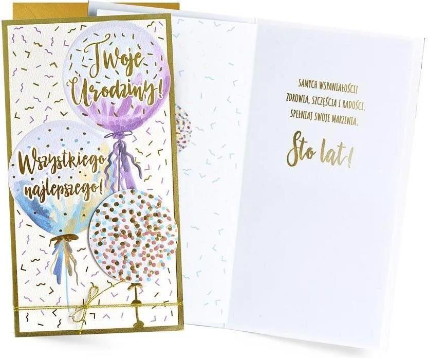Kartka na urodziny z serii Passion Moments PM-387 Każda kartka w kolekcji Passion Moments to małe arcydzieło - wyjątkowe i niepowtarzalne, piękne wizualnie. Kartki PM są bardzo bogato zdobione, a jednocześnie skromne i stylowe, cały efekt tkwi w detalach i doskonałym wykonaniu. W zależności od wzoru, na kartkach znajdują się dekoracje ze złotej, srebrnej, perłowej lub holograficznej folii, a także doklejki biżuteryjne, kokardki, laserowe wycięcia, wstążeczki i inne dodatki. Wnętrze karnetu to zawsze atrakcyjna grafika i tekst życzeń. Kartki mają w komplecie dopasowaną kopertę. Cechy szczególne: zdobienie: przynajmniej dwie folie (metaliczne/perłowe/holograficzne), elementy doklejane, wycięcia laserowe, wstążeczki - w zależności od wzoru, wnętrze: z delikatną grafiką, wyjątkowe życzenia w środku, w komplecie: dopasowana kolorystycznie koperta, okazja: urodziny Wymiary karnetu po złożeniu: 11,4 x 21,5 cm. Producent/osoba odpowiedzialna za bezpieczeństwo produktuPassion Cards Sp. z o.o.Bukowska 4162-081 Wysogotowosekretariat@kukartka.pl+48 61 624 56 00