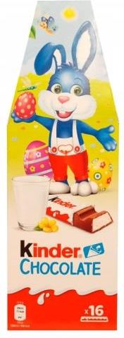 Kinder Chocolate Batonik z mlecznej czekolady z nadzieniem mlecznym 200 g Zestaw Kinder Mix czekoladek, to idealny prezent na Święta Wielkanocne, który zadowoli najmłodszych i osłodzi im dni przedświąteczne albo zachwyci jako prezent podczas Świątecznych poszukiwań. Zestaw zawiera 200g najpyszniejszych czekoladek znanej marki Kinder. Mini Kinder czekolada Batonik z mlecznej czekolady z nadzieniem mlecznym (60 %). Składniki: czekolada MLECZNA 40 % (cukier, MLEKO pełne w proszku, tłuszcz kakaowy, miazga kakaowa, emulgator: lecytyny (SOJA); wanilina), cukier, MLEKO odtłuszczone w proszku (18 %), olej palmowy, MASŁO odwodnione, emulgator: lecytyny (SOJA), wanilina, Składniki mleka: 33 % - Składniki kakao: 13 % Specyfikacja: Zawartość: 133g 16 batoników * wysyłamy losowe opakowania, które znajdują się na zdjęciach