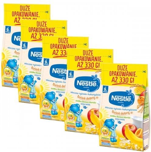 Nestle Kaszka Dzień Dobry Mleczna Ryżowo-Kukurydziana Jabłko Banan Morela dla niemowląt po 9 Miesiącu 5x330g Skalbmierz