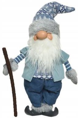 Krasnal doskonale podkreśli świąteczny klimat oraz sprawi radość nie tylko naszym pociechom ale wszystkim domownikom. Parametry: Wysokość: 52 cm Szerokość: 20 cm Grubość: 11 cm Kolor: odcienie niebieskiego, szarości Materiał: poliester Ozdoba Świąt Bożego Narodzenia