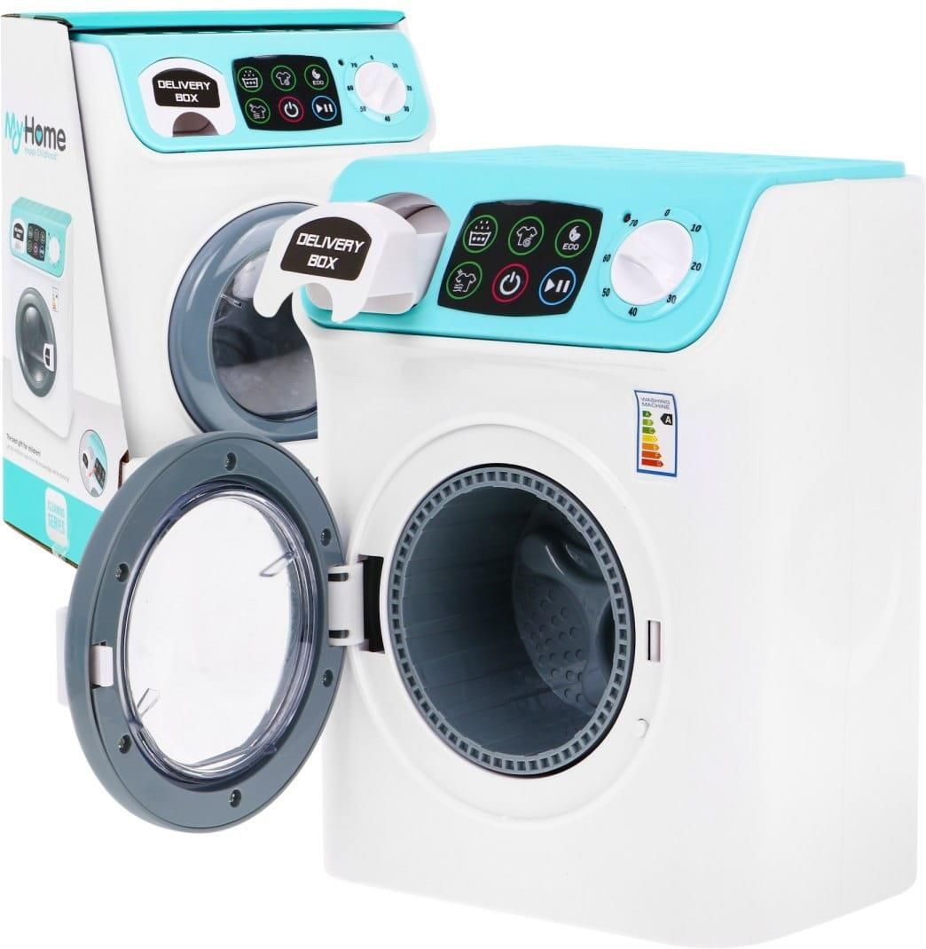 Pralka z efektami dźwiękowymi i świetlnymi, otwieranym bębnem i szufladką na detergenty to propozycja dla dzieci powyżej 3-go roku życia. Zabawka do złudzenia przypomina prawdziwą pralkę, posiada bowiem funkcje pary wodnej oraz wydaje charakterystyczne odgłosy towarzyszące procesowi prania. Zabawka wygląda i wydaje dźwięki zupełnie jak prawdziwa pralka. Pralka posiada panel dotykowy do wyboru programów prania i w zależności od cyklu słychać różne odgłosy pracy pralki oraz świeci się dioda z przodu zabawki. Z boku zabawki znajduje się ruchome pokrętło do zmiany temperatury. Funkcje pralki na wodę: światło i dźwięk, panel dotykowy do ustawiania programów, otwierana komora na detergenty, otwierany i obrotowy bęben, ruchome pokrętło do ustawiania temperatury. Wymiary: pralka ok. 23 cm x 16,5 cm x 12,5 cm, Rozmiar opakowania ok. 25 cm x 18,5 cm x 14 cm. Dlaczego warto nabyć zestaw do prania dla najmłodszych? Twoje dziecko wyćwiczy kreatywność i zdolność koncentracji. Zyska empatię i pozna na czym polega troskliwość i odpowiedzialność za innych. Twoje dziecko nauczy się dbać o obowiązki domowe. Niewątpliwym walorem edukacyjnym tej zabawki jest funkcja prania – czynności, które na co dzień dziecko obserwuje w domu i tutaj w zabawie może je odzwierciedlić.